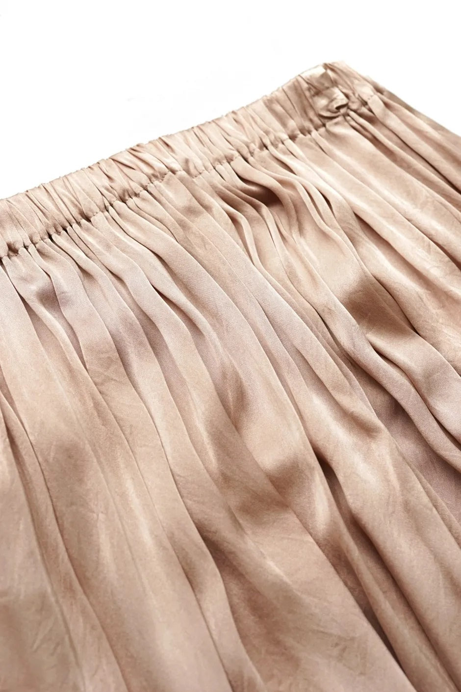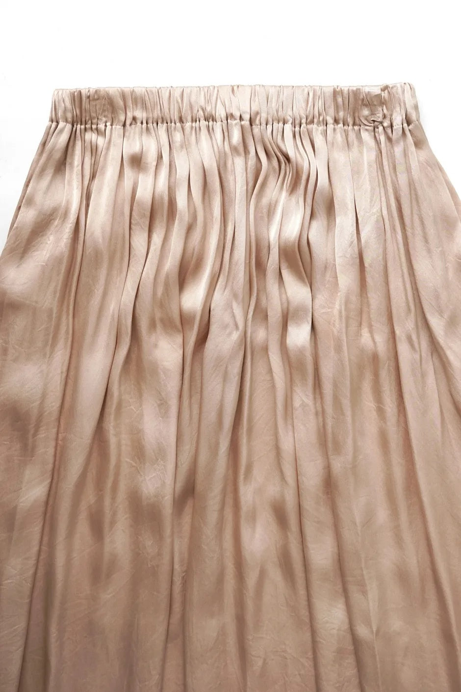 軽量ですが耐久性の高いシルクサテンにサンドウォシュを施したピーチスキンの様なシルク生地。 たっぷりギャザーの入ったボリュームのあるシルエットが美しい。