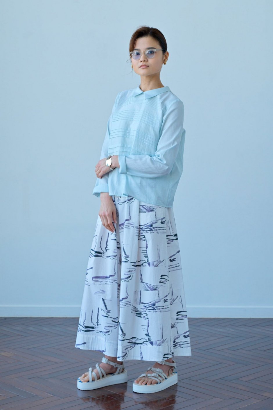 凛とした佇まいのタックブラウスは