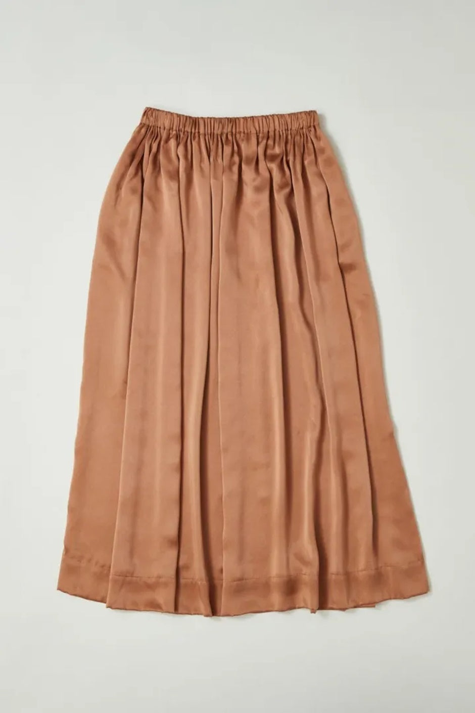 さまざまな生地を使い、デザインを少しずつブラッシュアップしながら作り続けているgather skirt。今回は、しなやかで柔らかなシルクサテン生地でお作りしました。