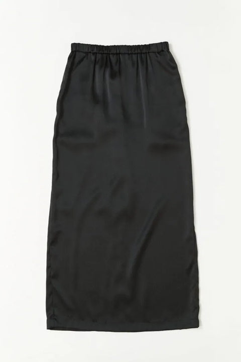 すっきりとスマートな直線を描く足首丈のtight skirt。さまざまな生地を使い、近年作り続けているhumoresqueの定番のスカートです。今回は、なめらかな肌触りのシルクサテン生地でお作りしました。