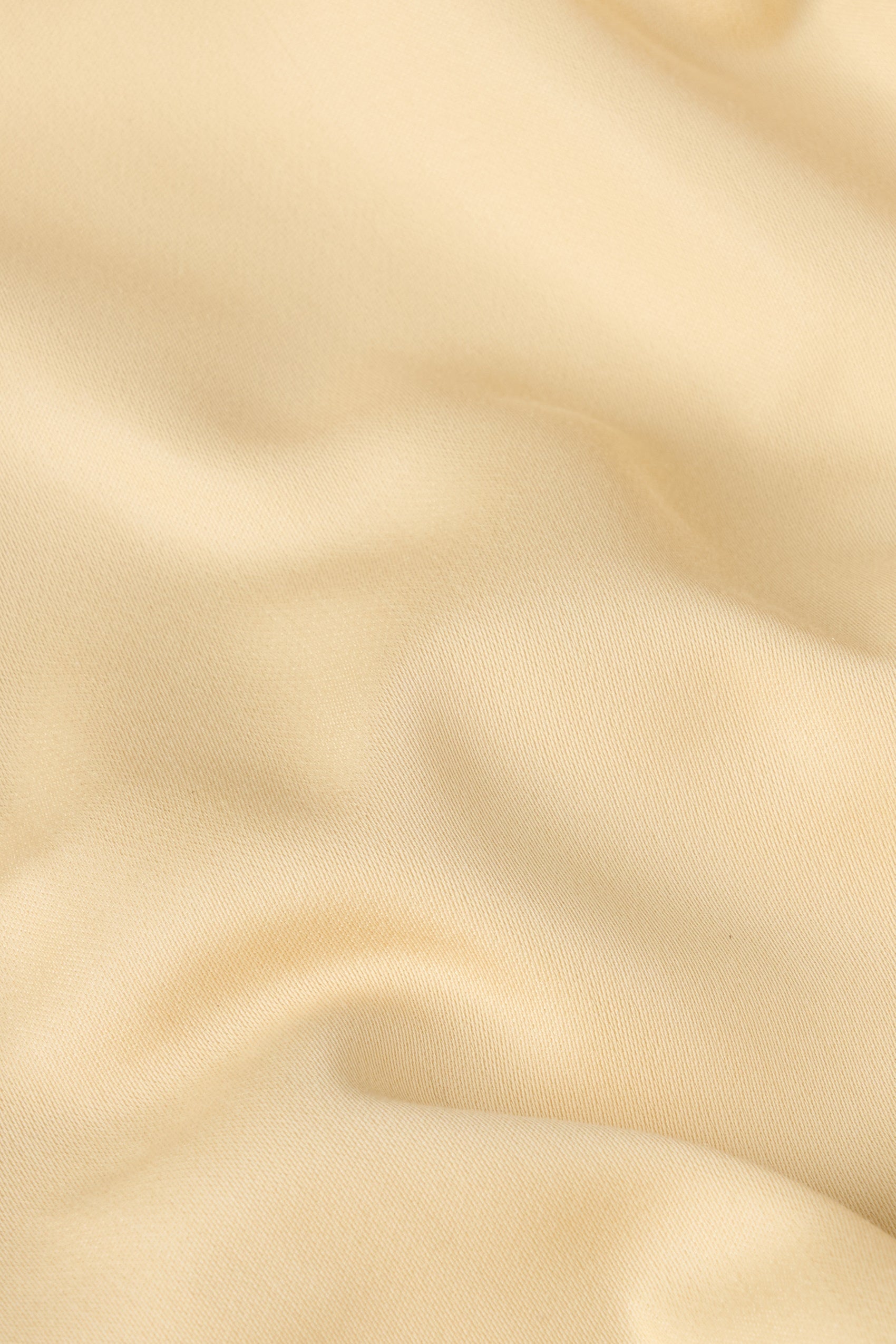 タテ糸にコットン、ヨコ糸にシルクを打った特殊なサテン素材で仕立てました。ふっくらとしたコットンを表に使い、脇役となったシルクがコットンのふかっとした表情を引き立てて、なめらかな表面を覆う上品な艶が静かな華やかさを添える魅力的な素材です。