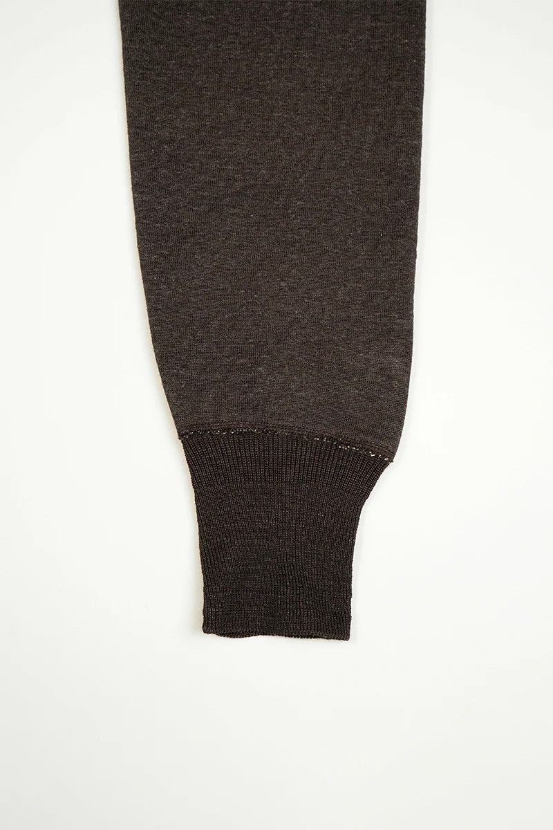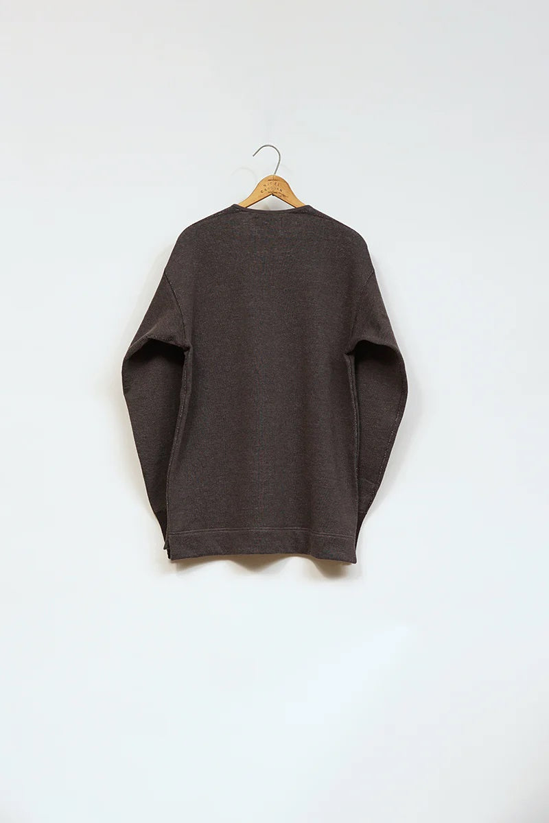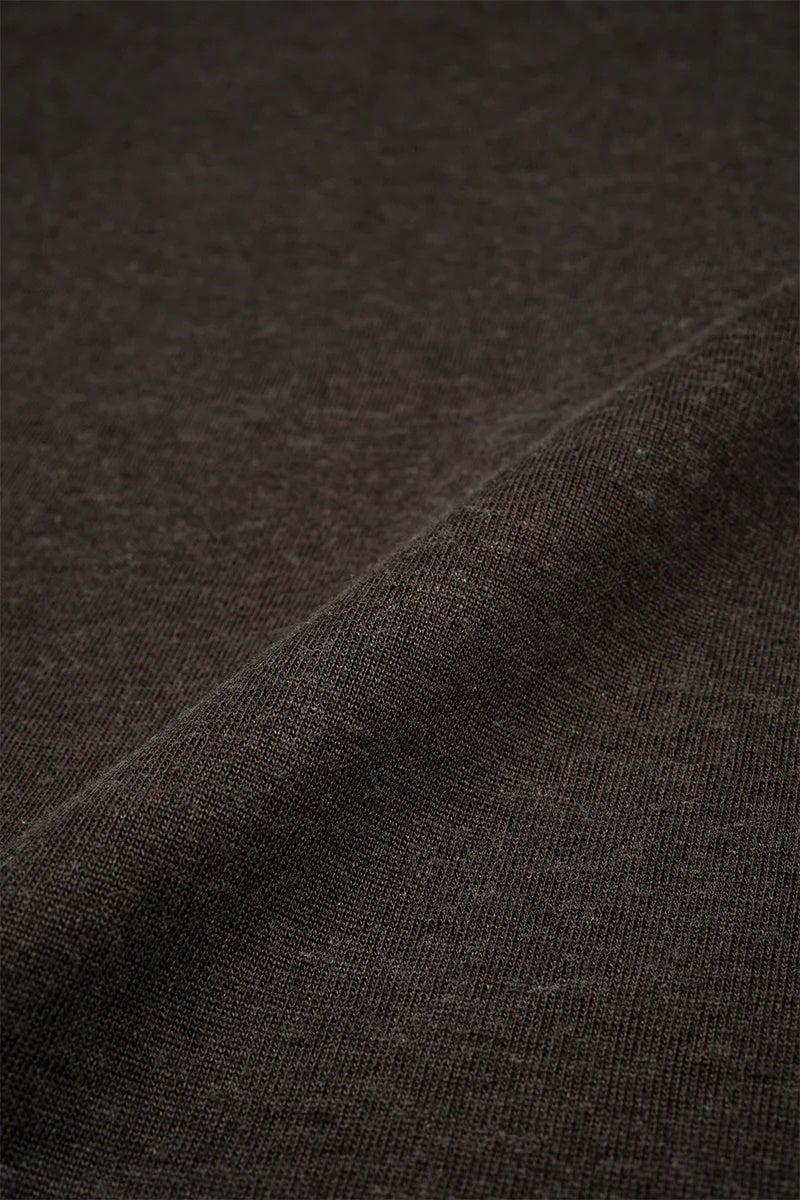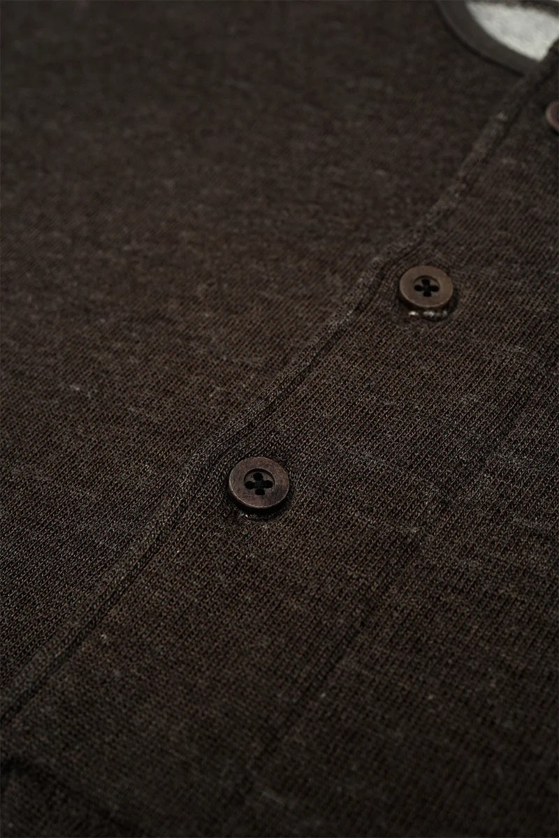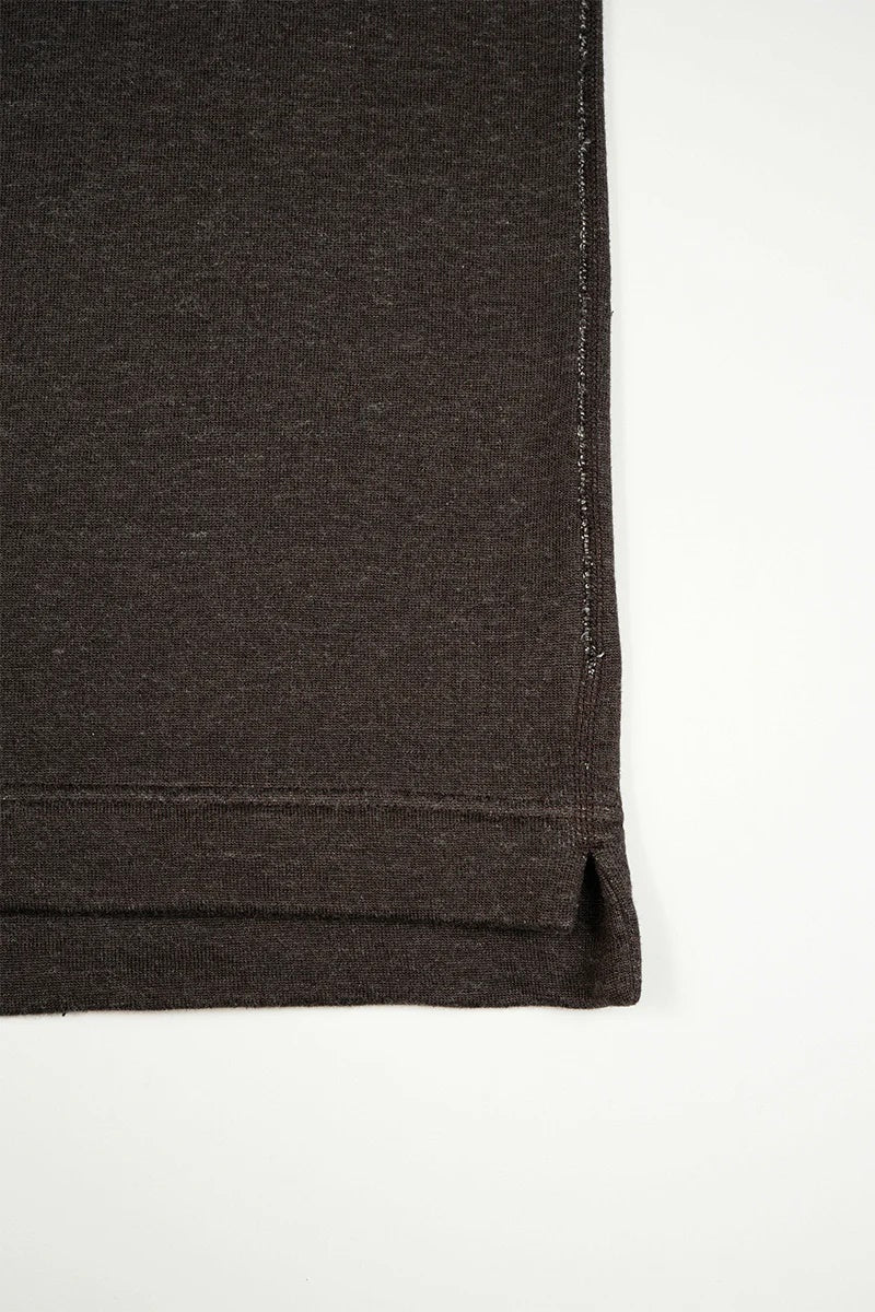 ブラックスミスが着用したヘンリーネックシャツ。オモテ糸はリネン、ウラ糸はコットン、編地は吊裏毛というスペシャルな編地。