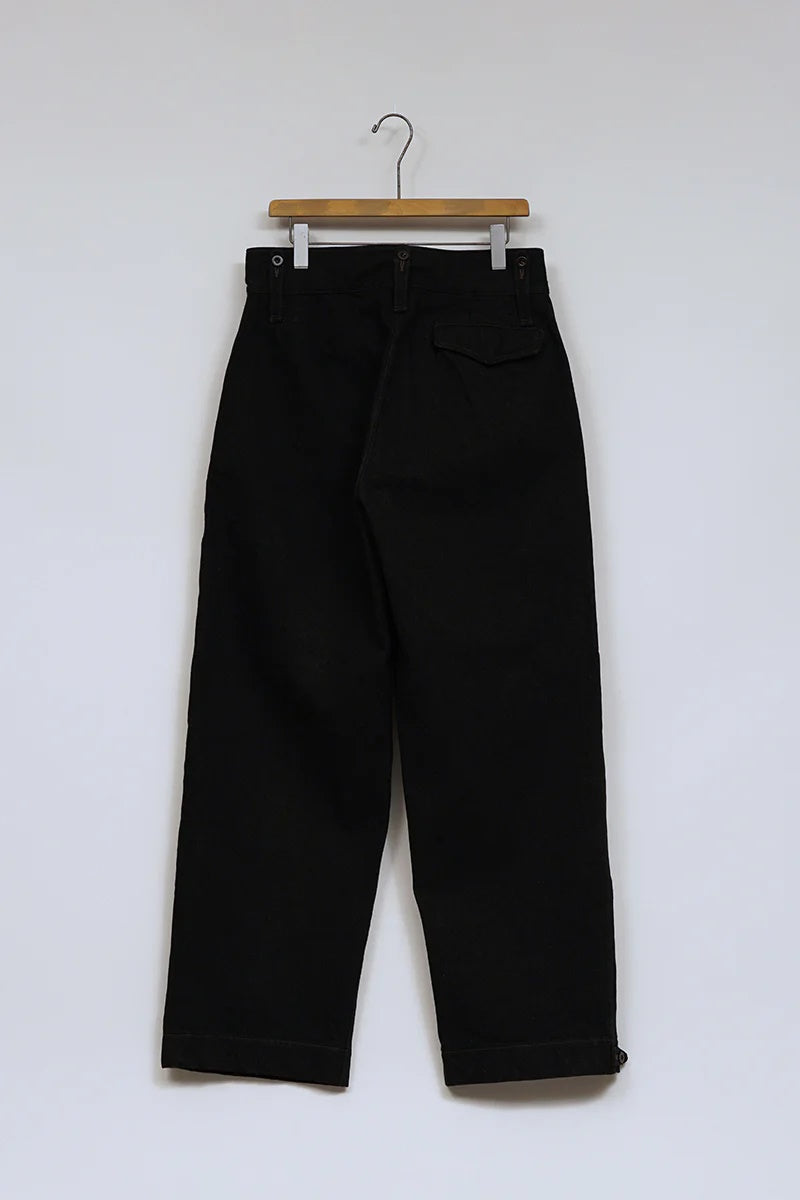 定番のブリティッシュアーミーパンツをベースにブラックデニムで製作した今季注目のパンツ。