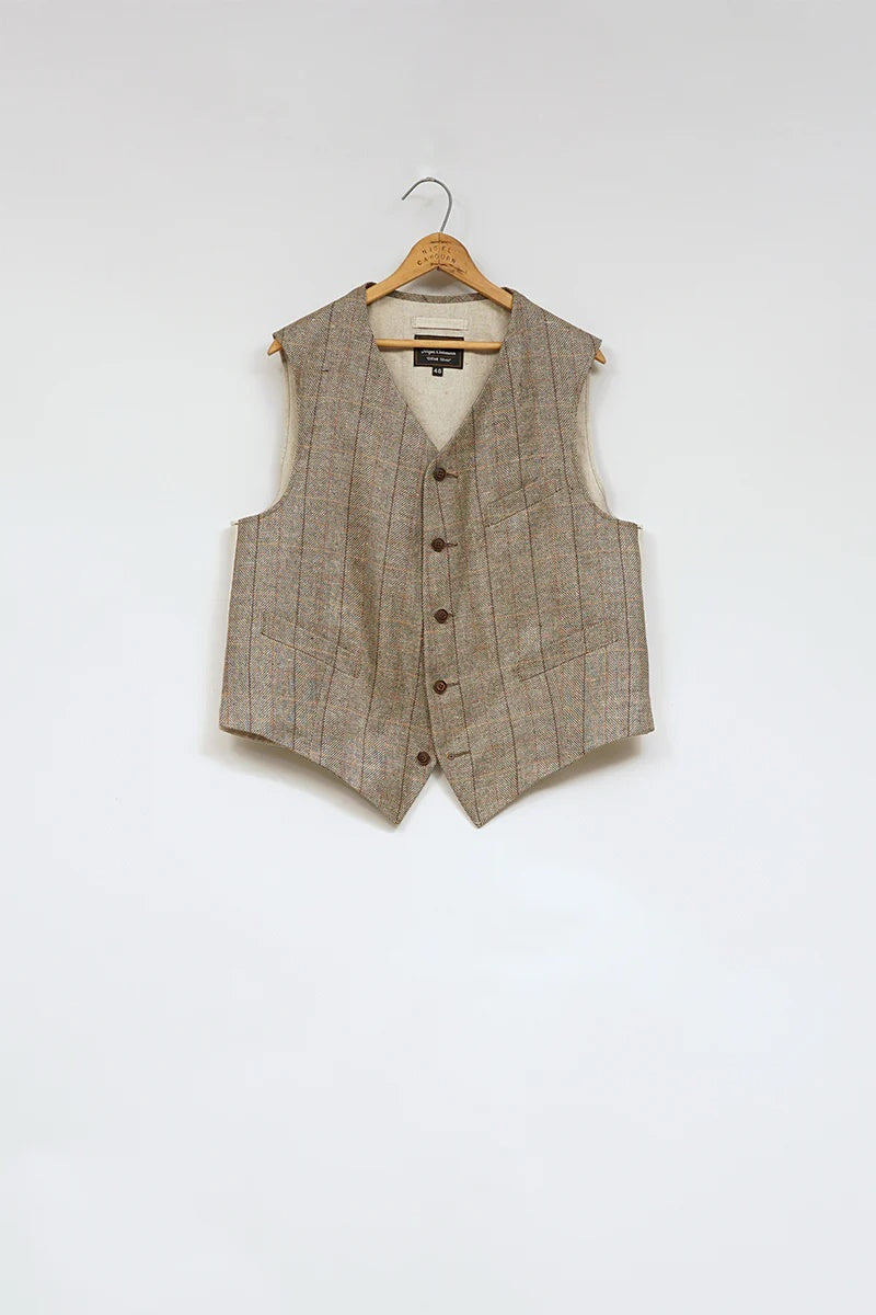 ◯ Nigel Cabourn - ENGINEER VEST HEMP LINEN CHECK - GREEN