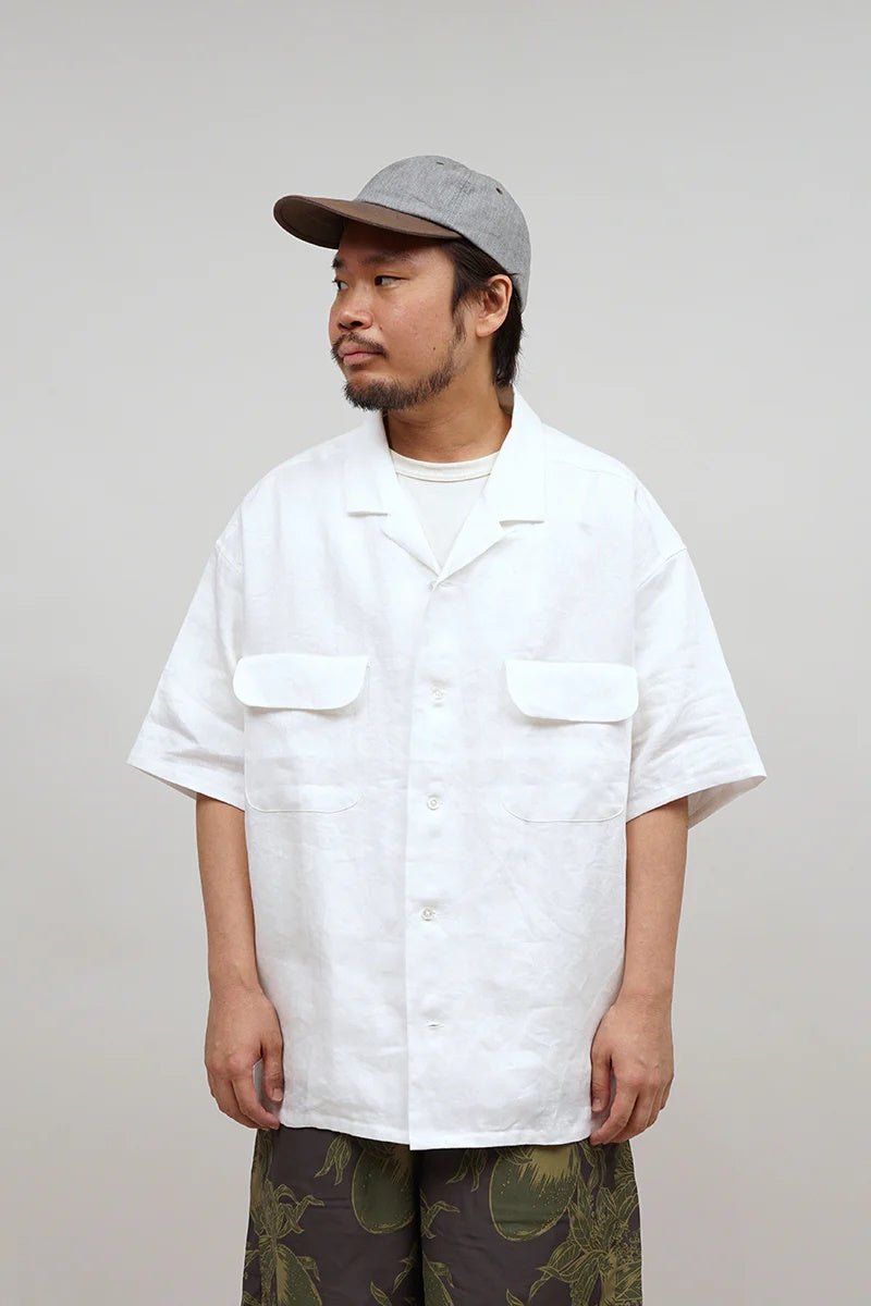 ◯ Nigel Cabourn - OPEN COLLAR SHIRT LINEN TWILL - OFF WHITE