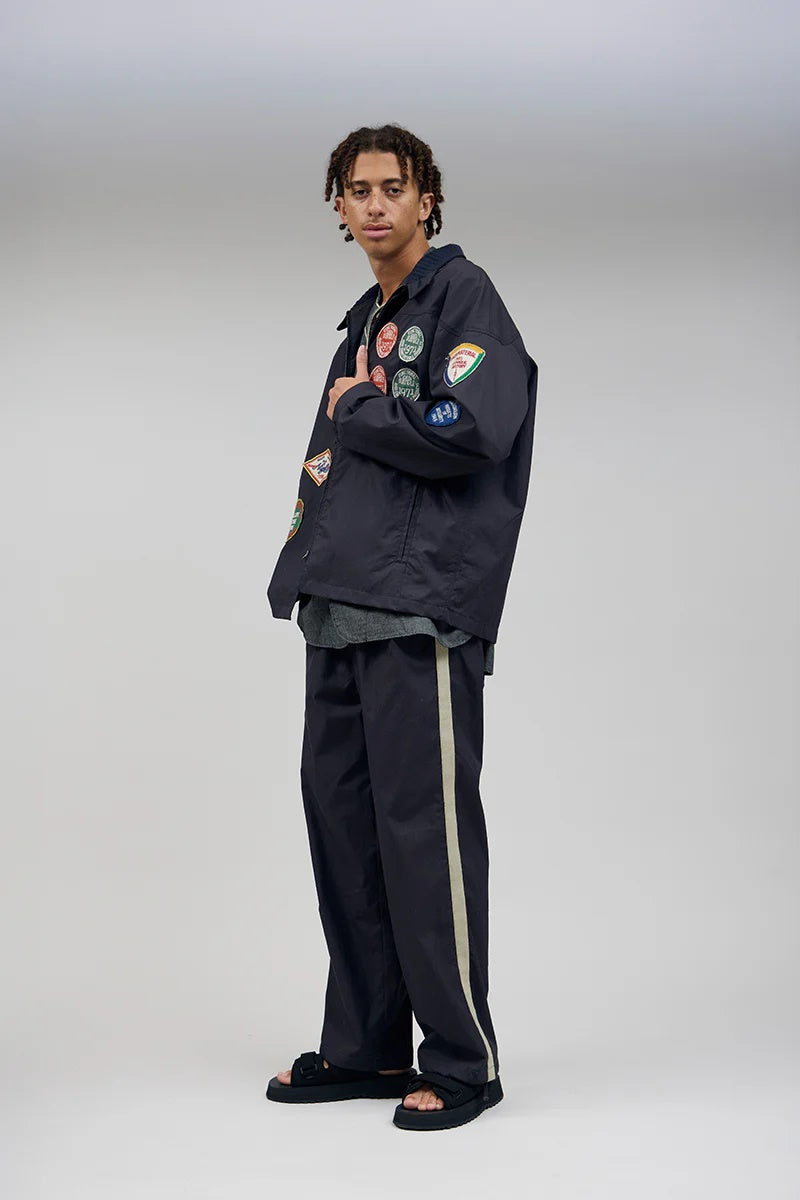今シーズンのテーマはベースボール&クリケット。ドイツによるポーランド侵攻に端を発した戦線はたちまち世界中に広がります。自ずと兵士たちは欧州を超えたアフリカ、東南アジア、太平洋の島々に派兵される事になります。兵役の僅かな時間の合間に、即席の道具を使ってべースボールやクリケットを楽しむ兵士たちの写真が残されています。1950年代のヴィンテージスポーツジャケットをベースにしたデザインです。肩ヨークの特徴ある逆カーブを細折ふせの縫製仕様で再現。オリジナルワッペンを大胆に配しています。