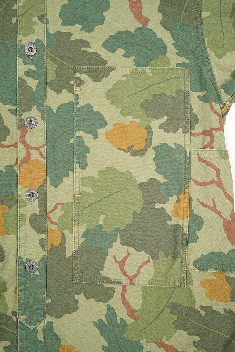 戦時中の余剰生地から作られた「ポスト・ウォー・ワークウェア」というシーズンコンセプトにインスパイアされた、最新のカモフラージュ柄を紹介いたします。ミッチェル柄カモフラージュは、1953年に海兵隊のハーフテントに初めて使用されたものです。
