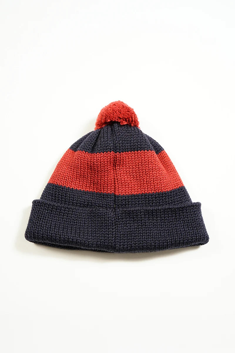 ◯ Nigel Cabourn - STRIPE BOBBLE HAT - DARK NAVY