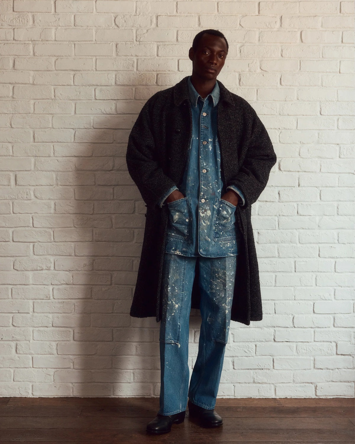 定番となるペインター仕様のワークトラウザー。 ワークパンツらしいダブルニーやハンマーループのディテールに、ワイドなシルエットが特徴的。 またステッチの色を部分的に抑えることにより、新鮮な表情を感じることができるでしょう。