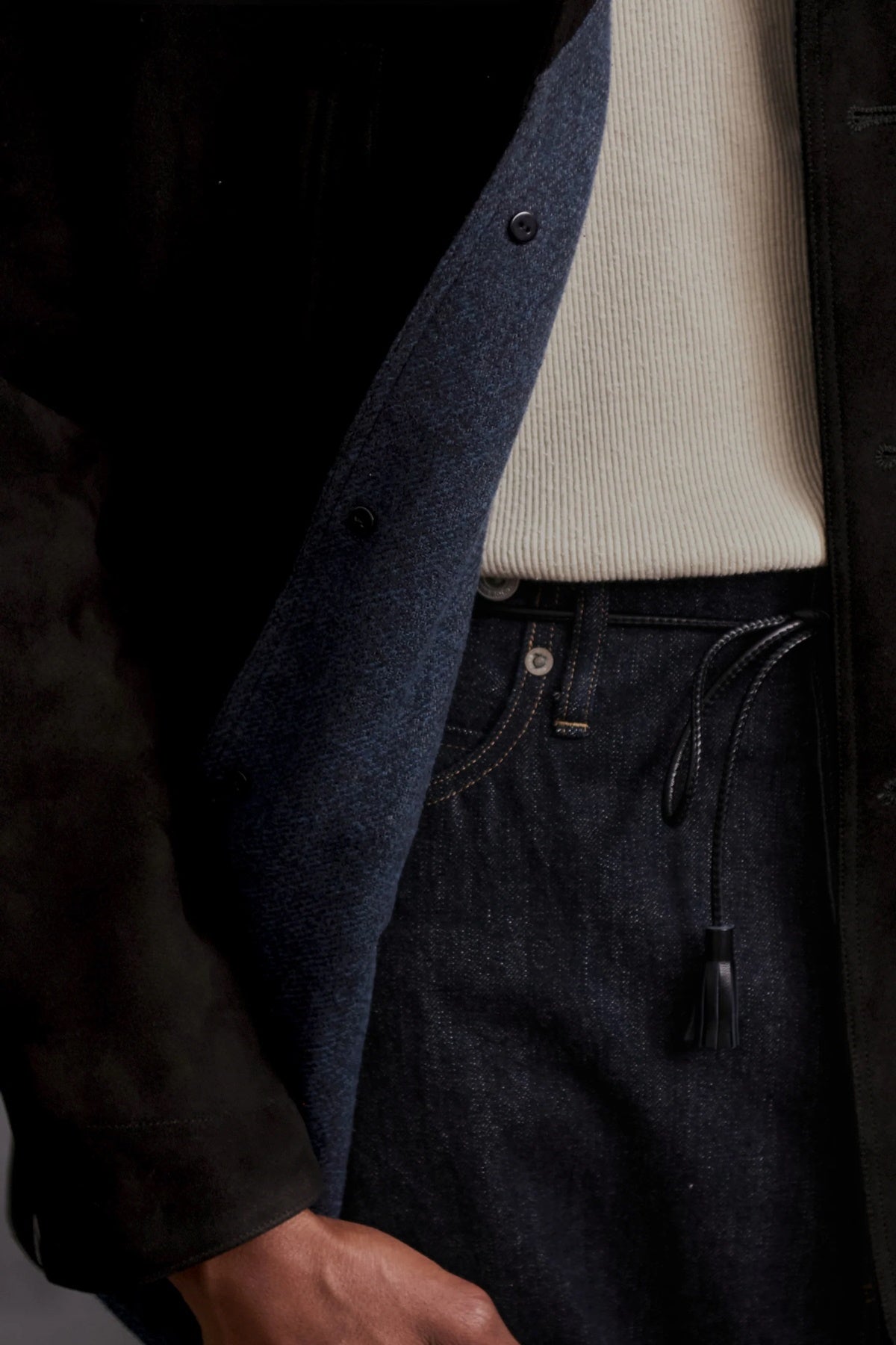 もっちりとした肉感のある柔らかなディアスキンはニュージランド原皮にクローム鞣しを施した、きめ細かく肌障りの良さが特徴。着込むに連れてより柔らかく変化していくことも期待できる。