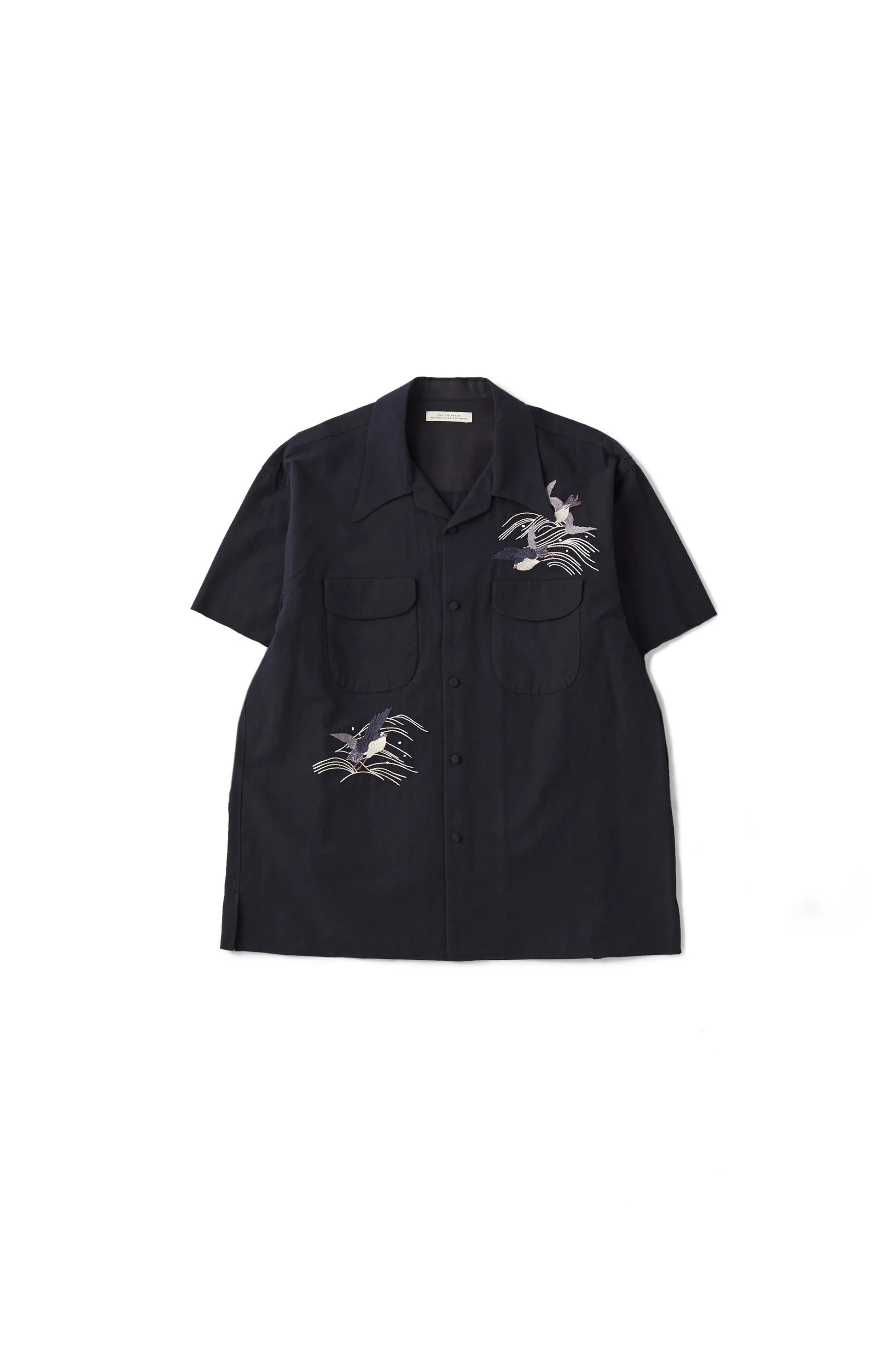 ○OLD JOE - SWALLOW COLLAR NASSOU SHIRTS S/S (EMBROIDERY) - BLACK