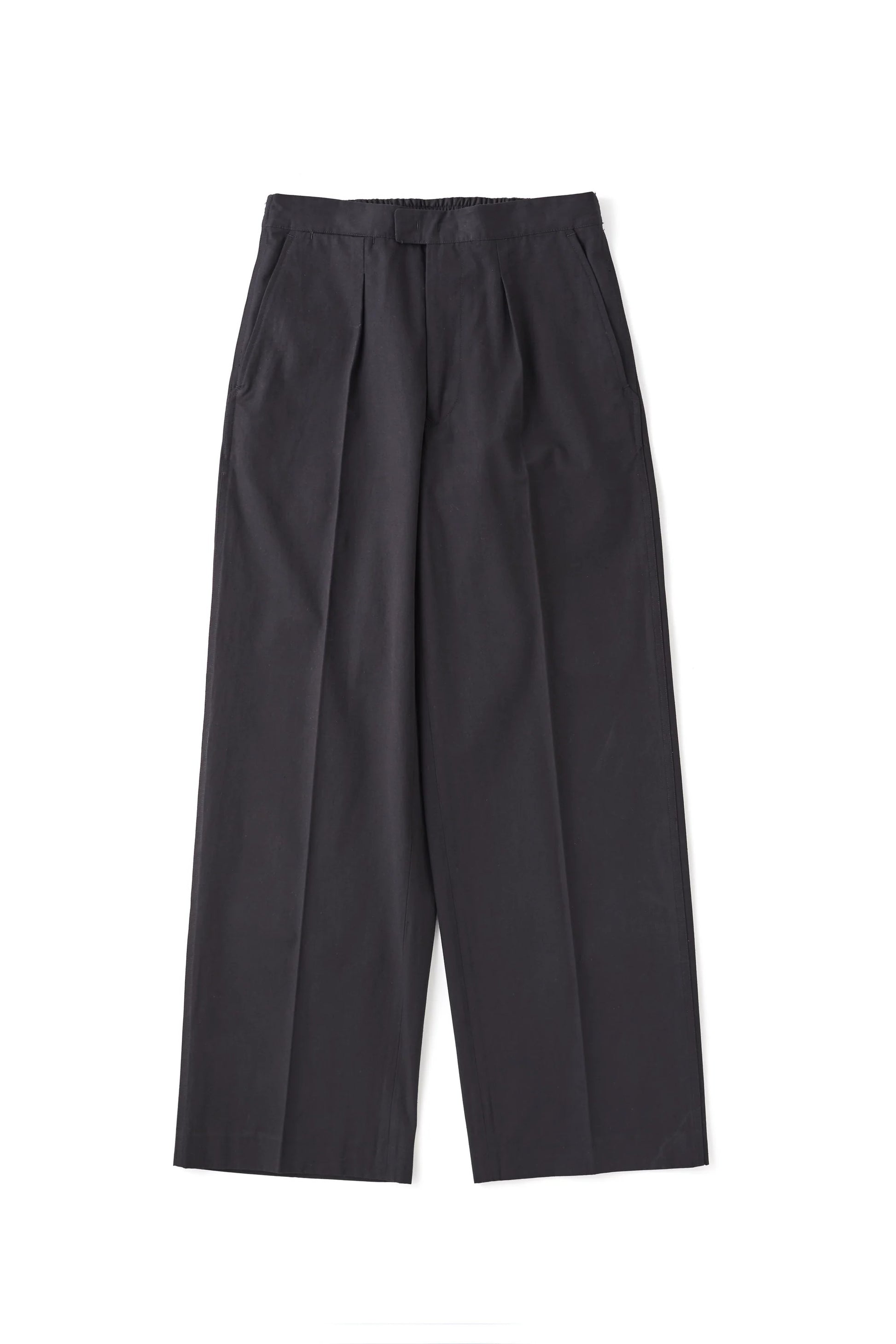 ミッドセンチュリーのアーカイブピースに倣いデザインされたベルトレスで履けるイージースラックス。後ろ身頃がギャザーウエスト、前身頃はプリーツとクリースラインが配してあるのでカジュアルになりすぎず、 ベルトループがないためタックインの際も美しい佇まいに。 スーベニアシャツとセットアップすることが可能。またローシルクの糸ならではのネップが目を引くマテリアルは、プリミティブかつモダンな佇まいを見せてくれます。