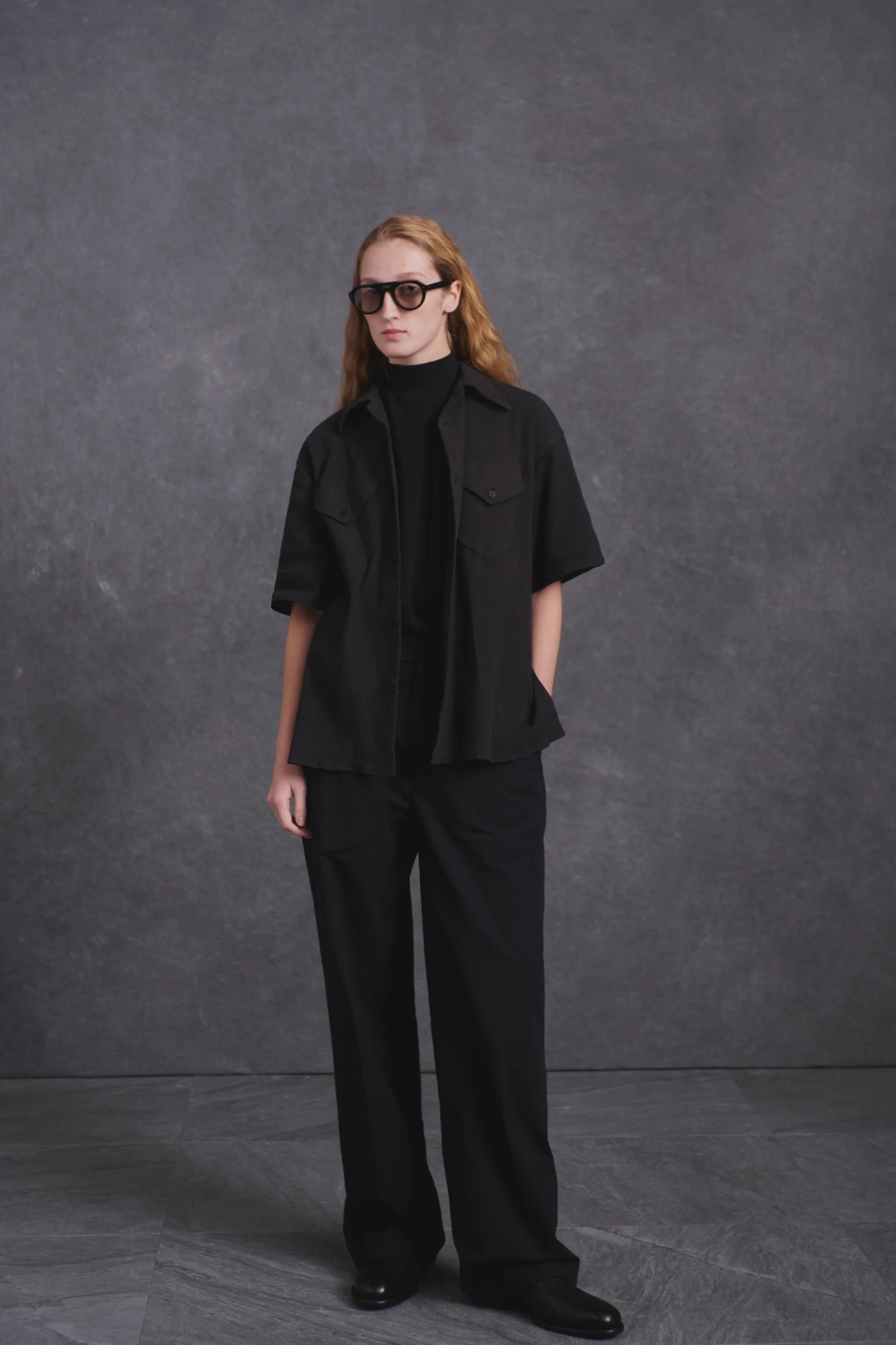 ○OLD JOE - SWALLOW COLLAR SPORTS SHIRTS (Short-sleeve) - ONYX