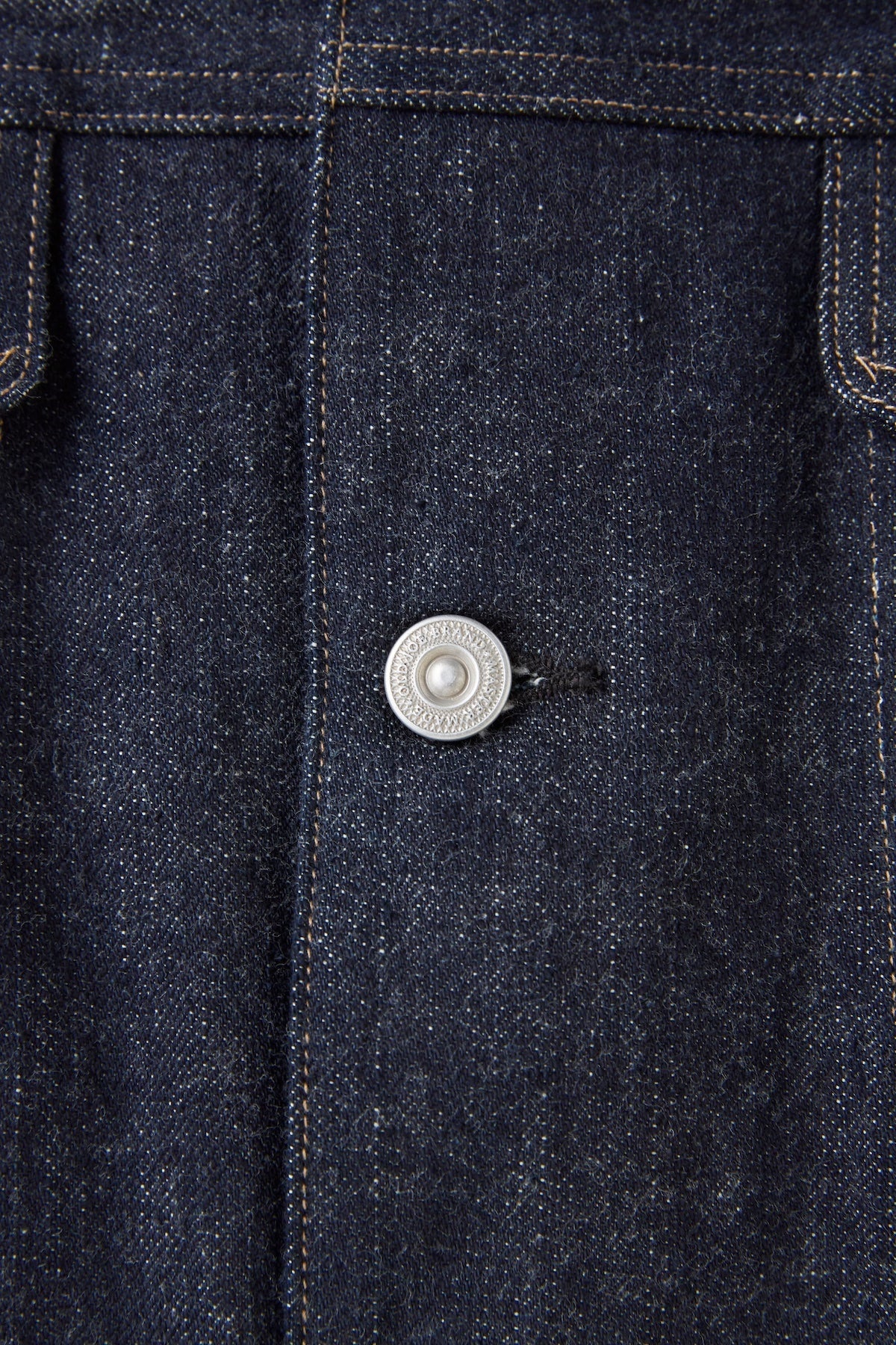 新型となるトラッカータイプのジーンジャケット。抑揚のついたポケットフラップ、美しく折り返った襟、程よくモダナイズされたフィット感、身頃脇に静かに配されたハンドウォーマーポケットなどオーセンティックな中に独自の魅力的な仕様が隠れている。