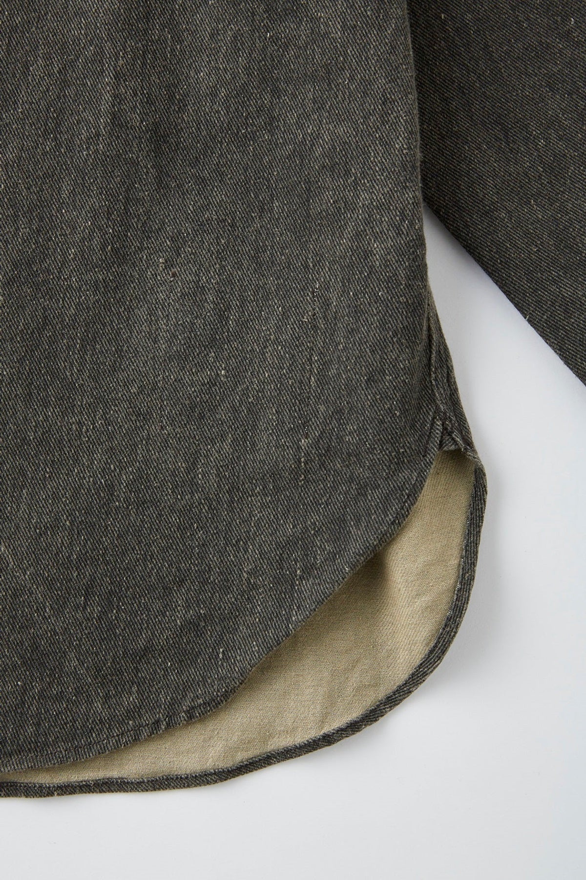 ミッドセンチュリー期のワーカーユニフォームからのインスピレーション。質実剛健なワークシャツをベースにアップデートさせたOLDJOEらしいシャツ。当時を彷彿させるロングポイントな襟先、肌に触れにくい仕様になったユニークなシガレットポケット、剣ボロのない簡素ながらも実用性に富んだ袖口の仕様、トリプルステッチやエルボーパッチなど目を引くディテールは敢えてそのままにデザインとして残している。また今季は敢えてジョルジュジャケット、ローバートラウザーとのセットアップと組めるようにラインナップ。国籍を跨いだ組み合わせが私たちらしいスリーピース。