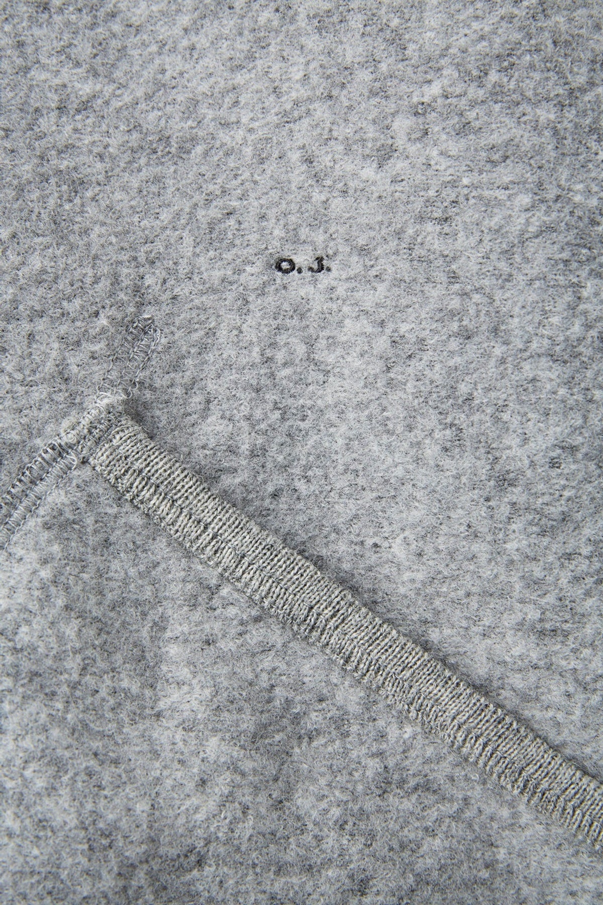 ジッパーフロント仕様のスウェットフーディー。フードに配したジッパーを全開にして折り畳み、襟のようにトランスフォームする事が出来るユニークなデザインが目を引く。ファンシーウールヤーンで編み立てたマテリアルは、上質な質感と心地よい肌触りが特徴的。またテーラーメイドのシャツに施されるような上品なイニシャル刺繍がクラシカルな雰囲気を盛り上げる。