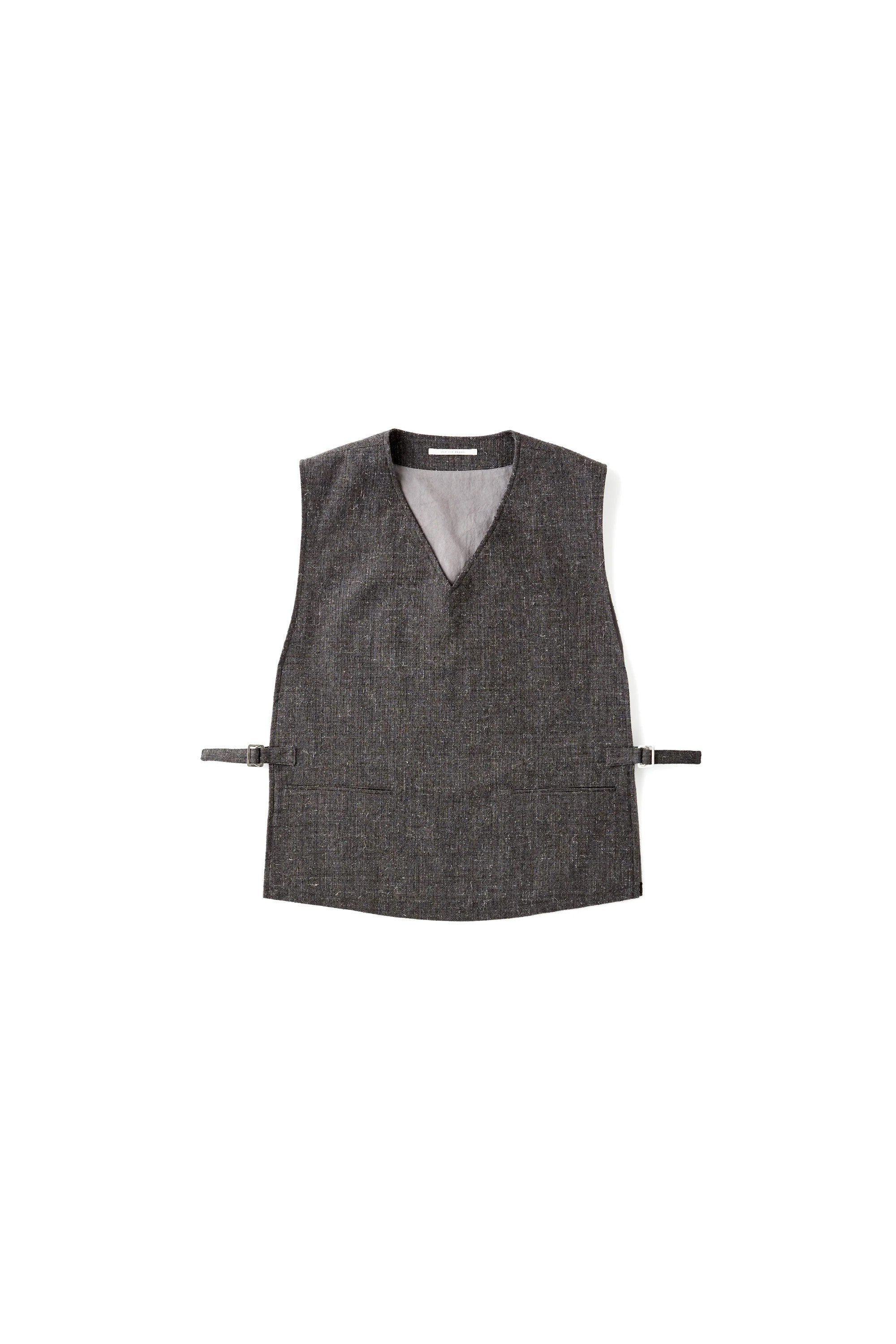 脇見頃がオープン仕様になっており、ストラップを調整してフィットさせるユニークなデザイン。ミッドセンチュリー期のアーカイブからのインスピレーション。従来のスリーピースのスーツスタイルにはないスポーティな存在感を醸し出す。