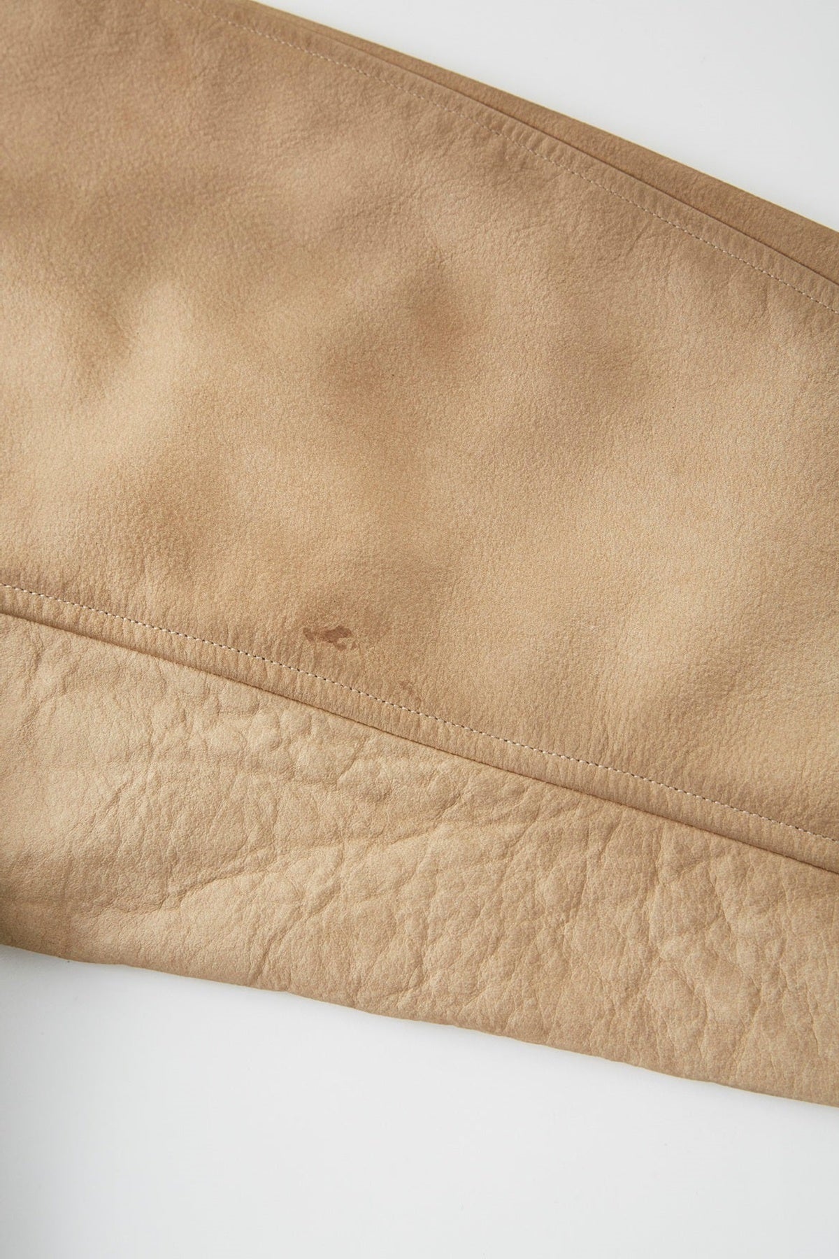 フロントボタンタイプのアワードジャケット。レターの着かない簡素なデザインの中に冴え渡る古き良きアスレチックアーカイブピースからインスパイアされた意匠設計と、現代的な解釈で製作されたブークレーメルトンがモダンな佇まいとなります。ユニークなラインを見せるラグラン切り替え、2種のウールをブレンドさせて編み立てたブークレーニットパーツ、3枚のパーツにより構成される立体的なスリーブはシュリンク作業を施したカウスキンを用いて組み立てられ、その後一点一点、手作業により味だしされます。また襟、裾リブ接ぎ箇所に見られるテープ仕様も今では見られないユニークなディテールとなり、このプロダクトの存在価値を引き立ててくれます。