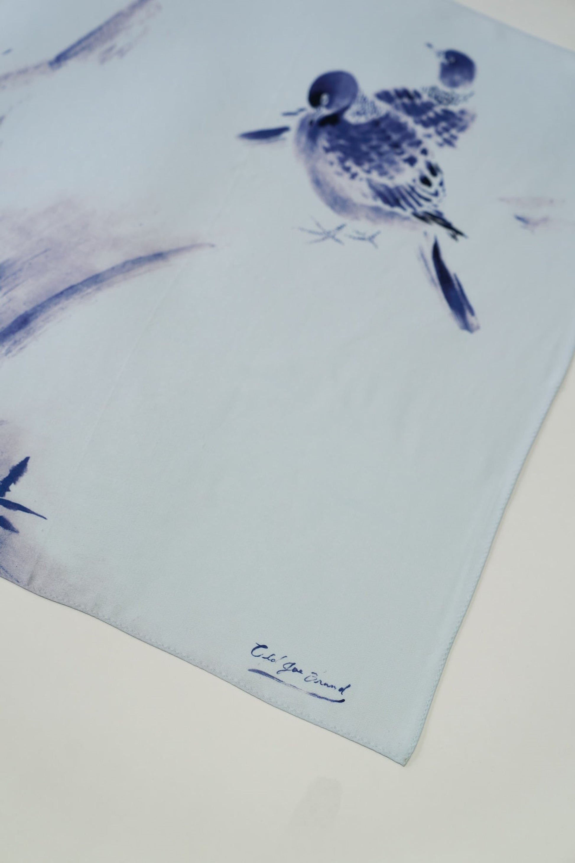 定番のプロダクト、オリジナルテキスタイルのバンダナ。チーフがわりにポケットに挿したり、バンダナの様に首に巻いたりと使い勝手の良いピースとなります。草と鳥が佇む景色はまさに日本の原風景と言え、筆のストロークやブラッシングの味わいも楽しんでいただける今季のモチーフは今までにない新たなOLD JOEスタイルを感じれるでしょう。