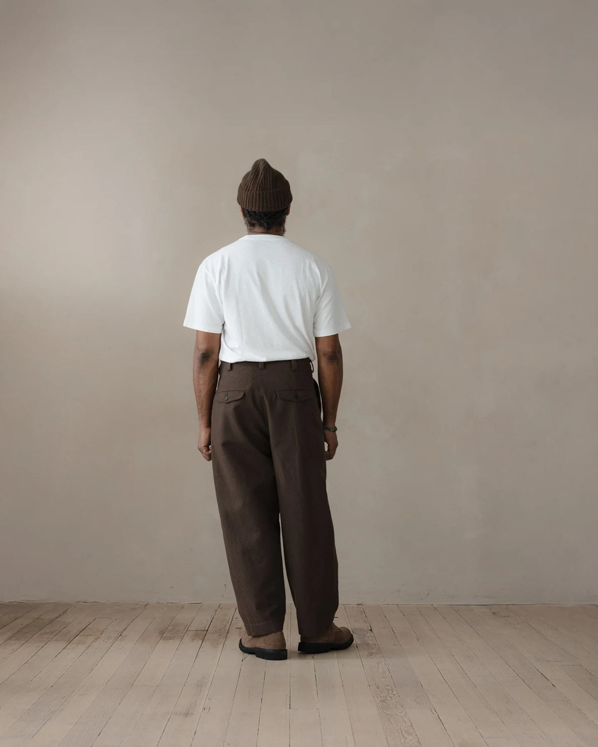 evan kinori - Two Pleat Pant - Brush Wool/Cot/Linen - Dark Olive
