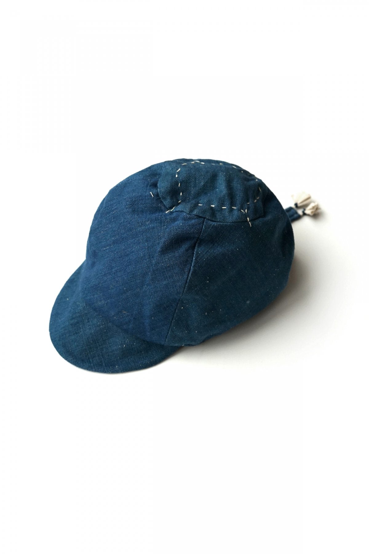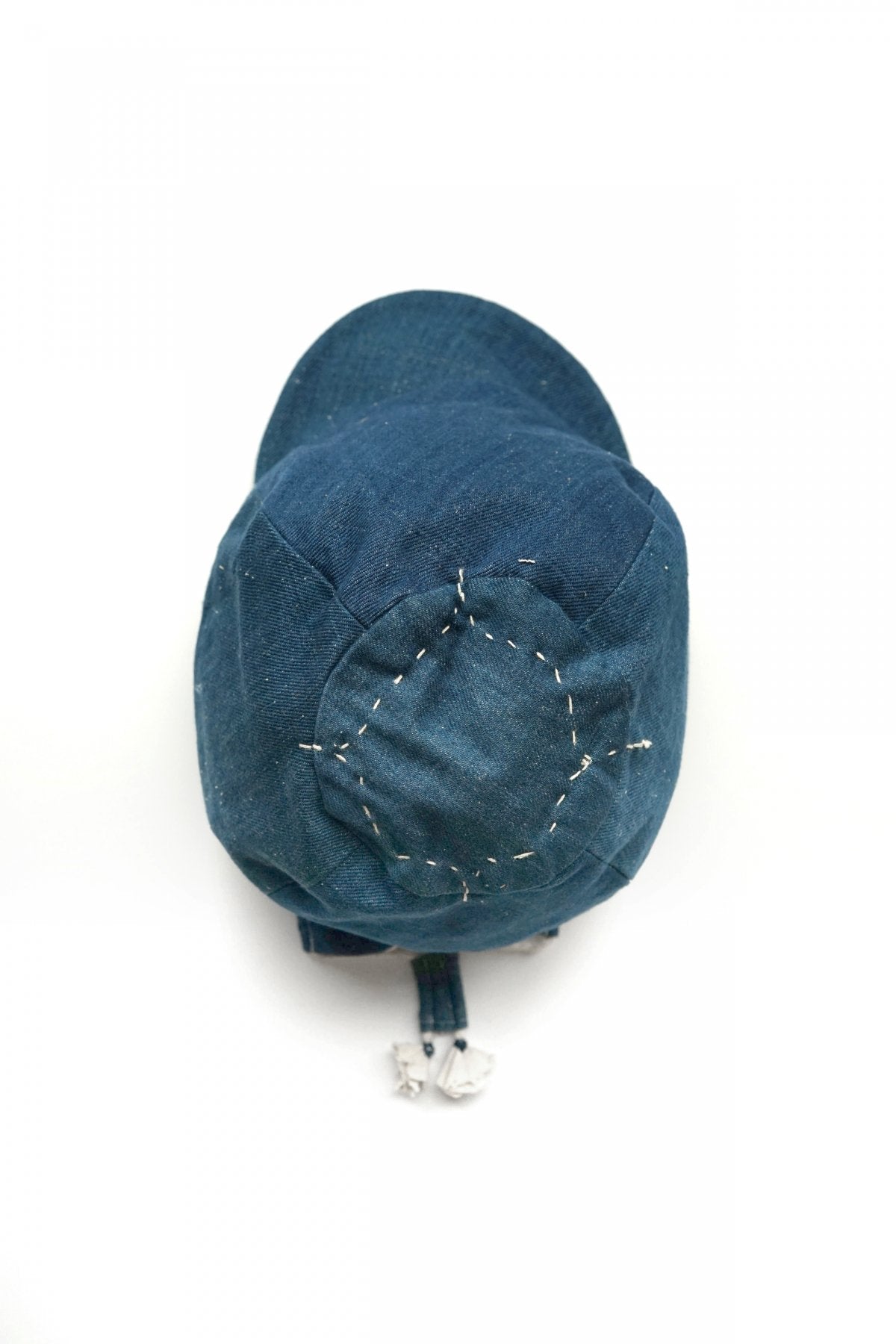 インスピレーションは北インドの山岳地帯のハンターキャップ。 インドにてナチュラルインディゴダイにて染色したコットン生地。 ハンドステッチのディティールが目を引きます。