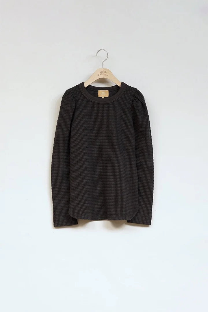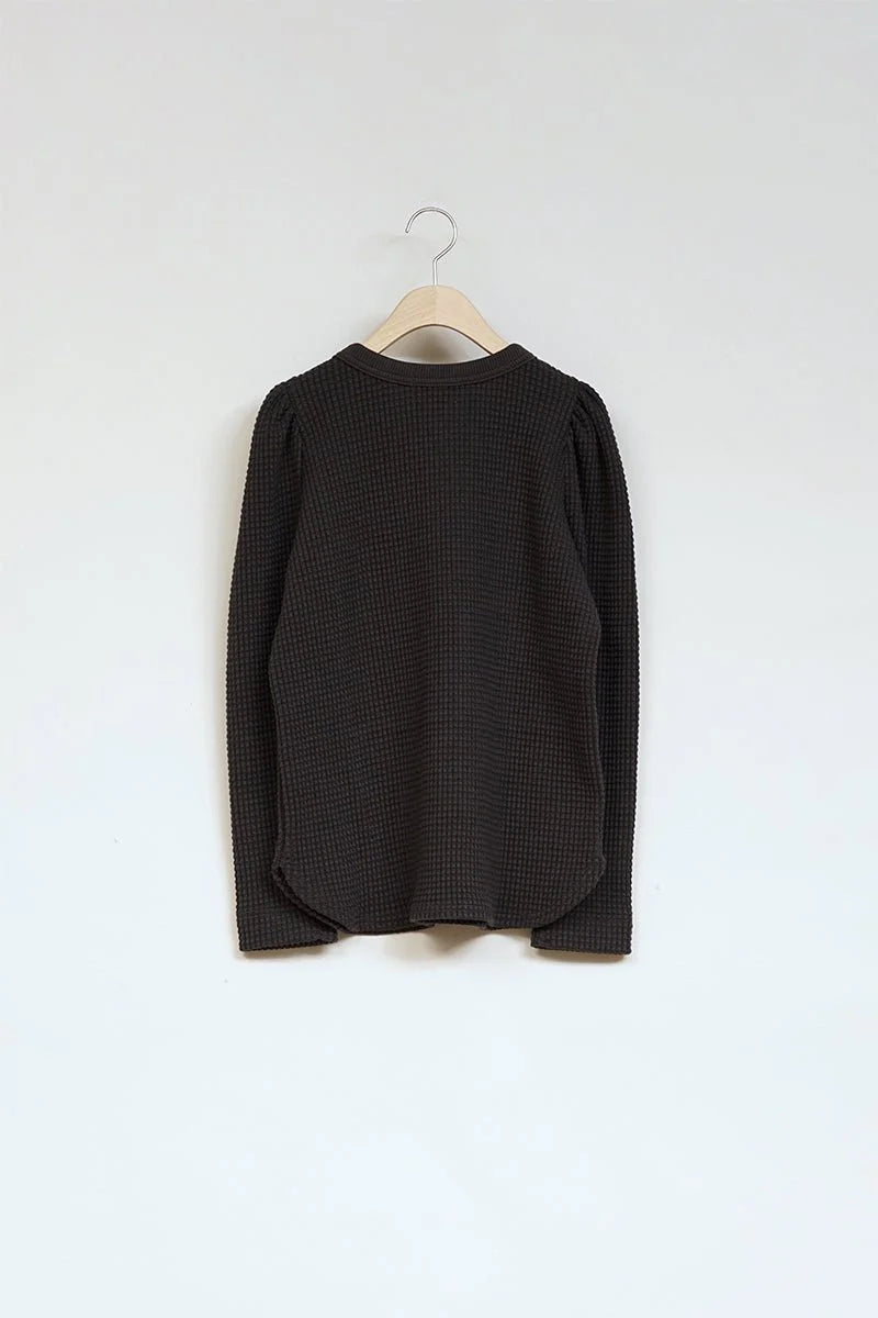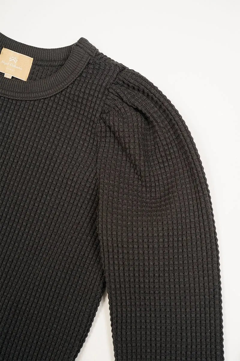 ◯ Nigel Cabourn woman - GATHER SLEEVE HEAVY WAFFLE P/O - CHARCOAL GRAY