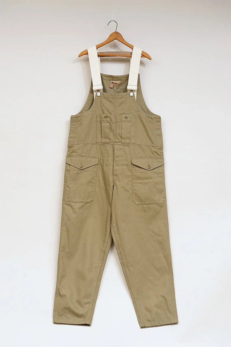 鉄道労働者のウェアから着想されたデザインです。ワークウェアスタイルのオーバーオールである本アイテムは、厚手のツイル素材で、リラックスしたフィット感+脚はストレートシルエットでデザインされています。胸のスプリットパッチポケット、太ももの2つの大きなカーペンタースタイルポケット、コントラストのあるストラップが特徴です。バータックがポケットの端の周りに縫い付けられ、耐久性を高めます。