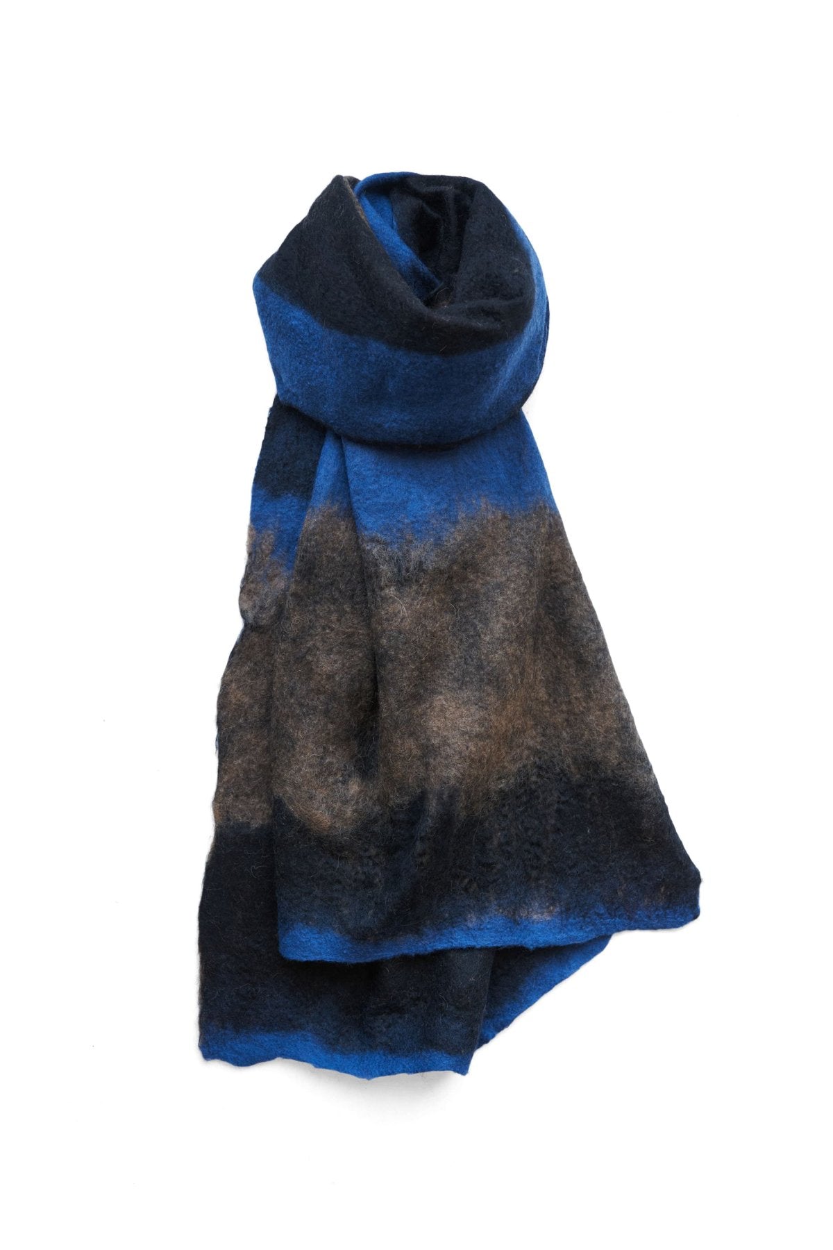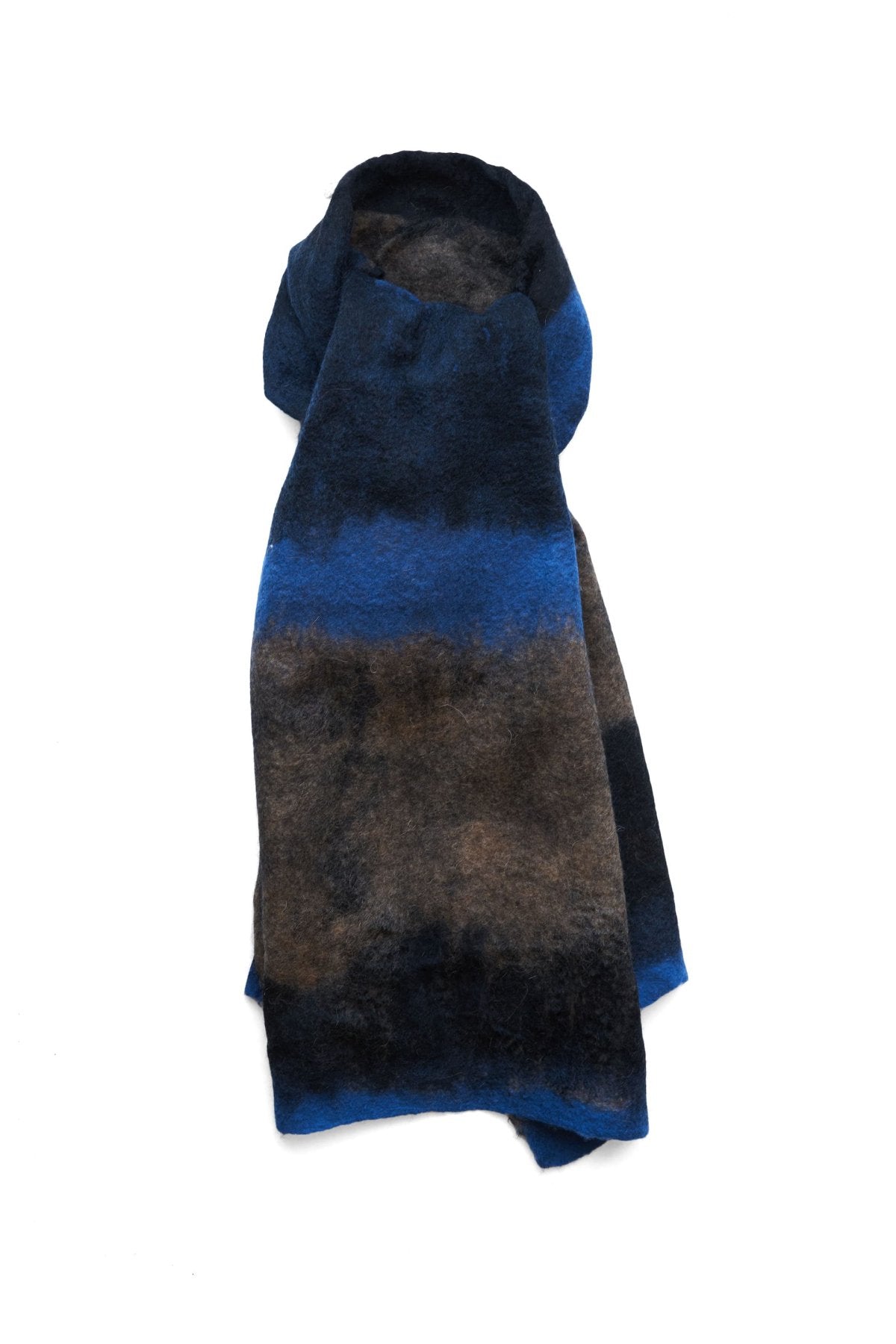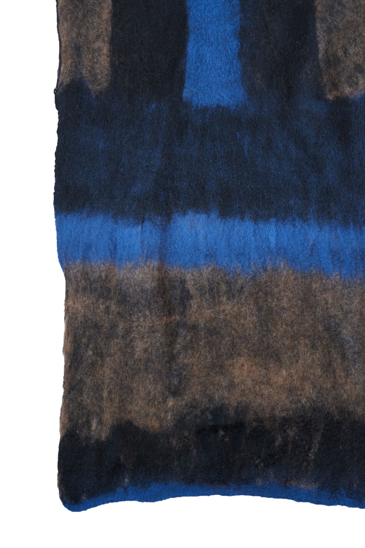 非常に柔らかで軽く温かみのある肌触り、使って行くうちにフェルト化してゆく経年変化や一つとして同じ物ができないクラフト、ハンドメードならではの特性もお楽しみ頂きたいストール。