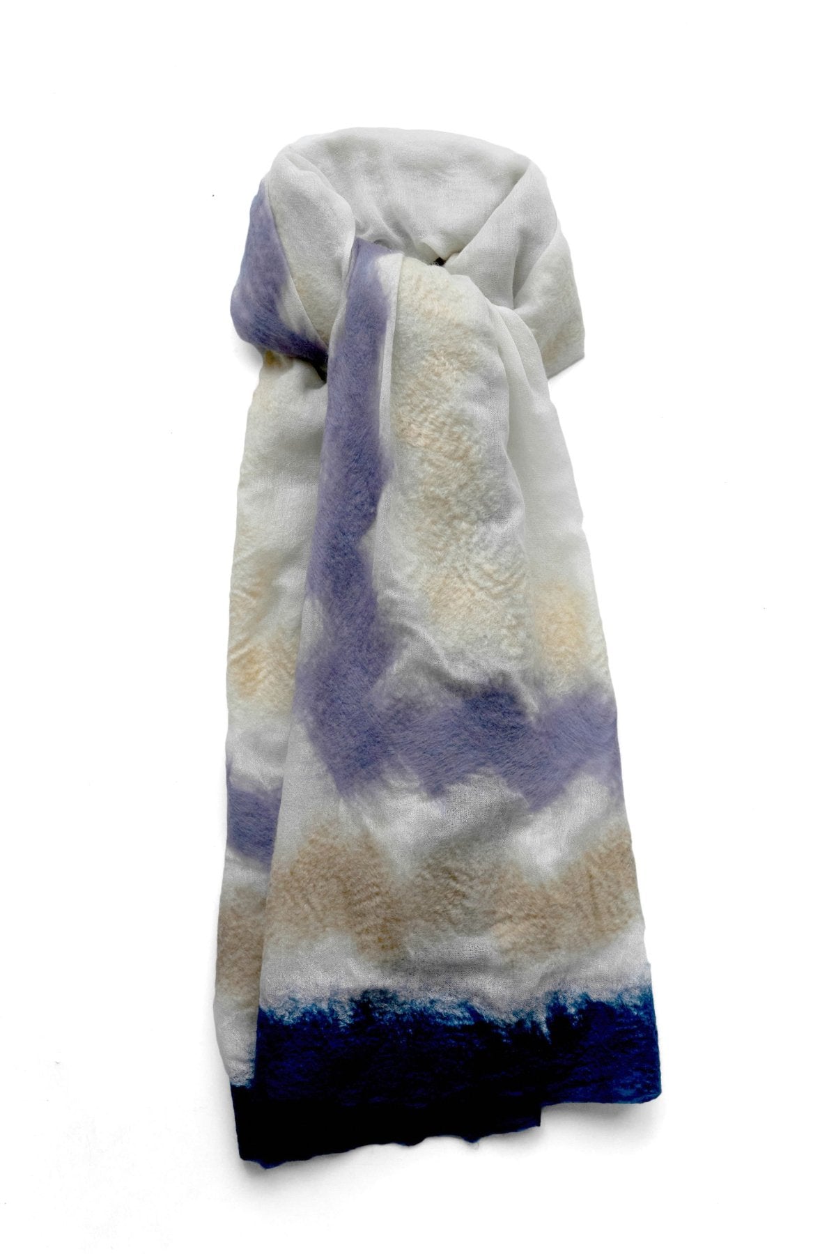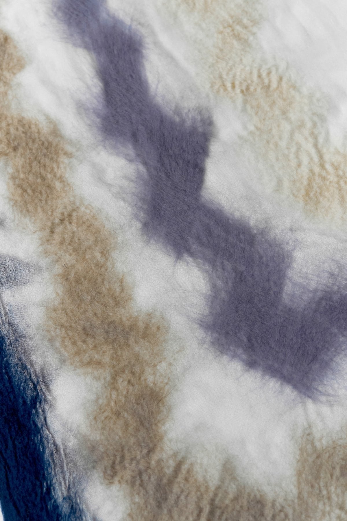 非常に柔らかで軽く温かみのある肌触り、使って行くうちにフェルト化してゆく経年変化や一つとして同じ物ができないクラフト、ハンドメードならではの特性もお楽しみ頂きたいストール。