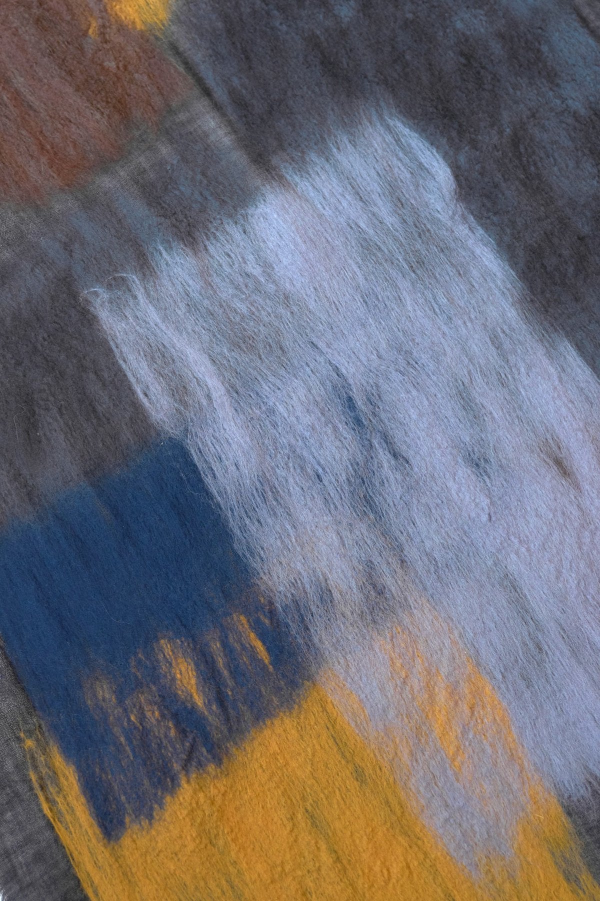 非常に柔らかで軽く温かみのある肌触り、使って行くうちにフェルト化してゆく経年変化や一つとして同じ物ができないクラフト、ハンドメードならではの特性もお楽しみ頂きたいストール。