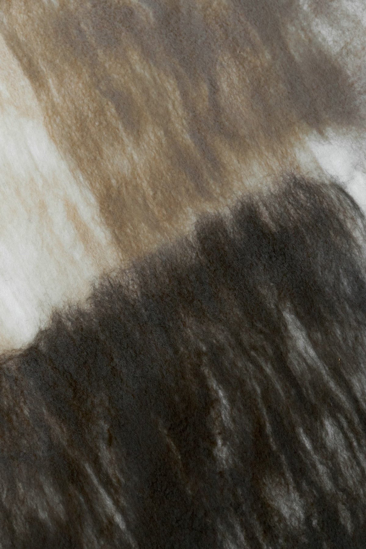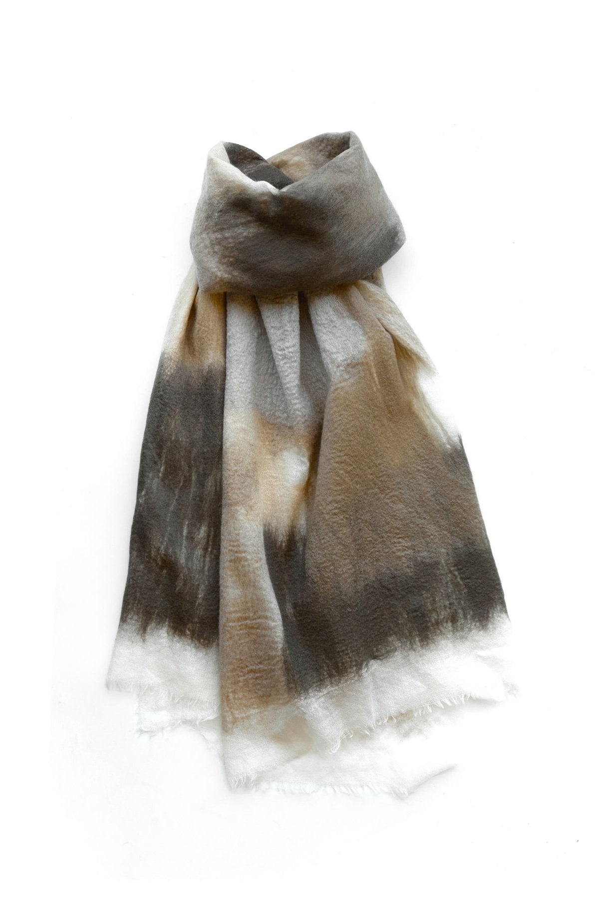 非常に柔らかで軽く温かみのある肌触り、使って行くうちにフェルト化してゆく経年変化や一つとして同じ物ができないクラフト、ハンドメードならではの特性もお楽しみ頂きたいストール。
