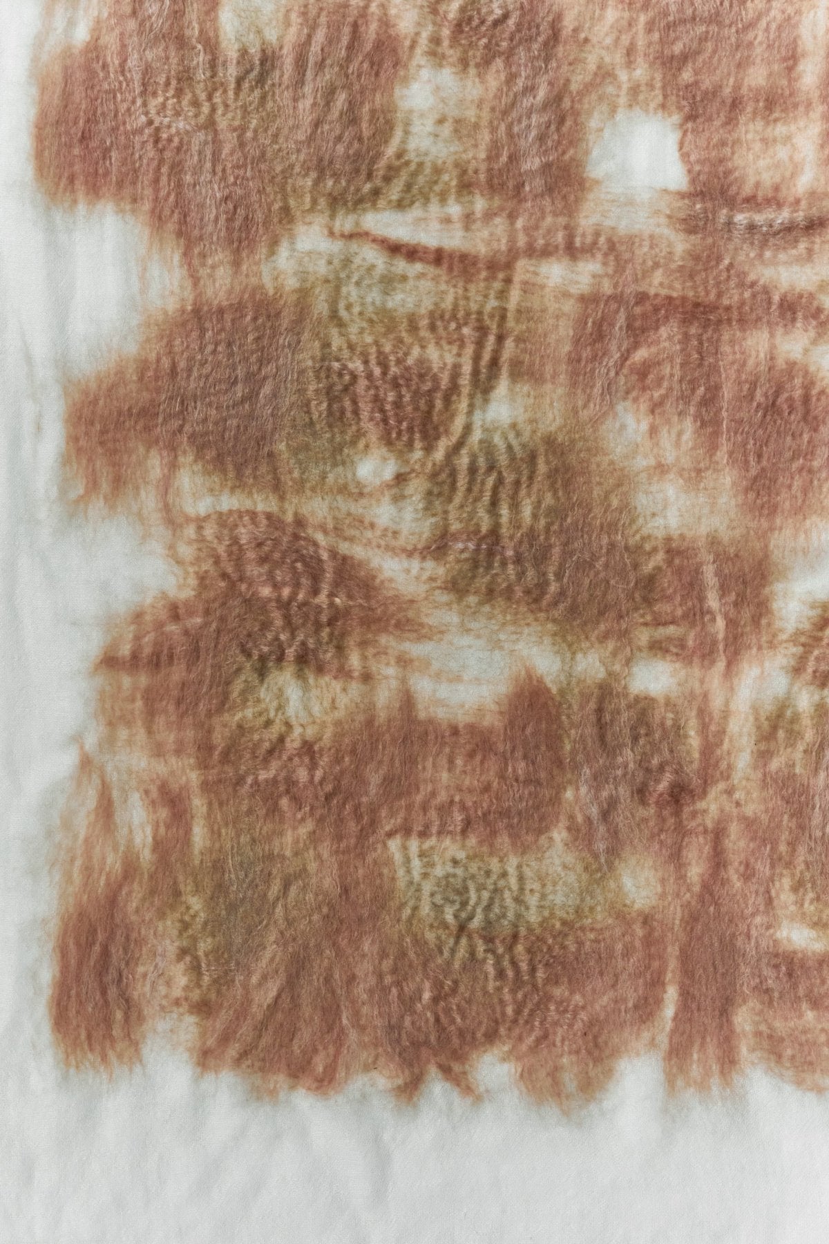 非常に柔らかで軽く温かみのある肌触り、使って行くうちにフェルト化してゆく経年変化や一つとして同じ物ができないクラフト、ハンドメードならではの特性もお楽しみ頂きたいストール。