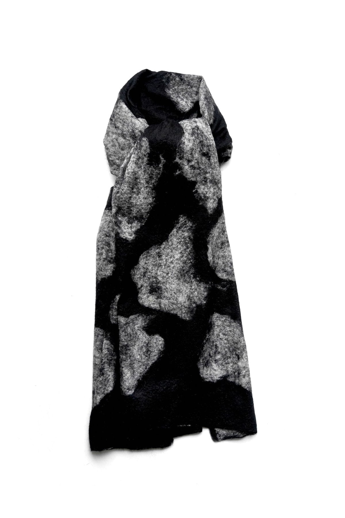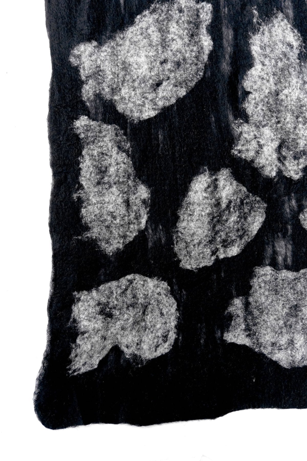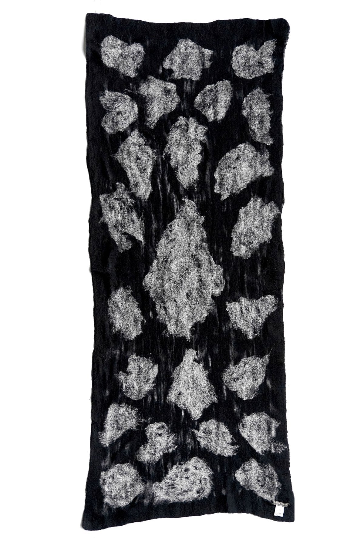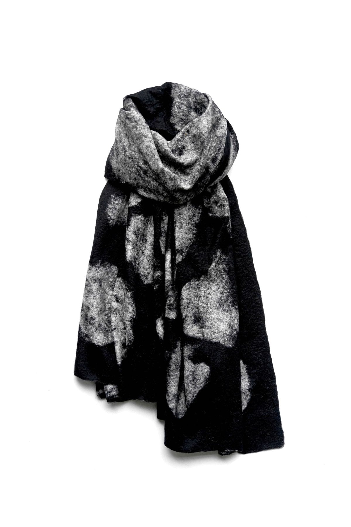 非常に柔らかで軽く温かみのある肌触り、使って行くうちにフェルト化してゆく経年変化や一つとして同じ物ができないクラフト、ハンドメードならではの特性もお楽しみ頂きたいストール。