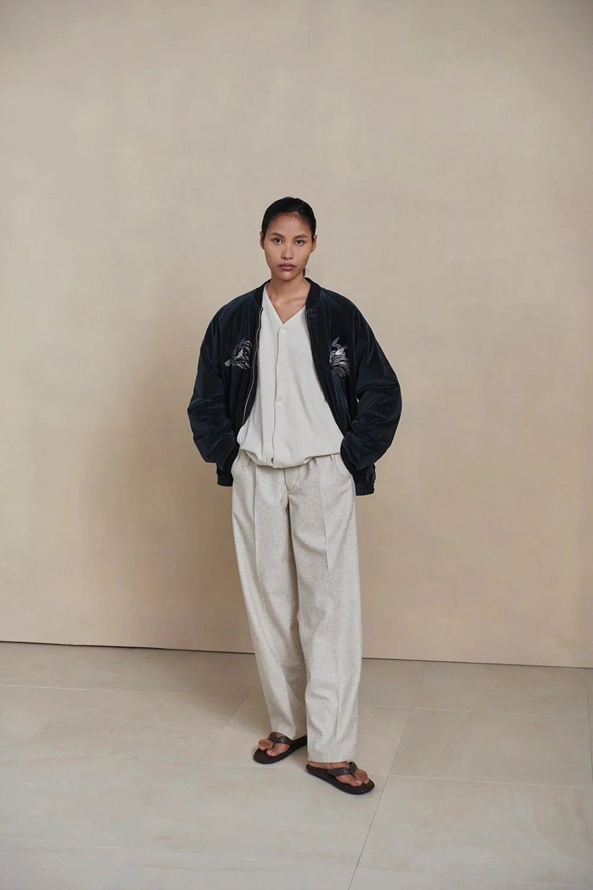 シグネチャーピースのスマーティートラウザー。1930’s頃のドレストラウザーからインスパイアされたクラシカルなディテール、深めの股上、モダンなテーパードラインを持っているので、 幅広いコーディネートにフィットしてくれるでしょう。生地は1/16のウールフラノ。国内の厳選されたTOP糸を使用しており、他にはない深みのあるカラー展開が特徴。