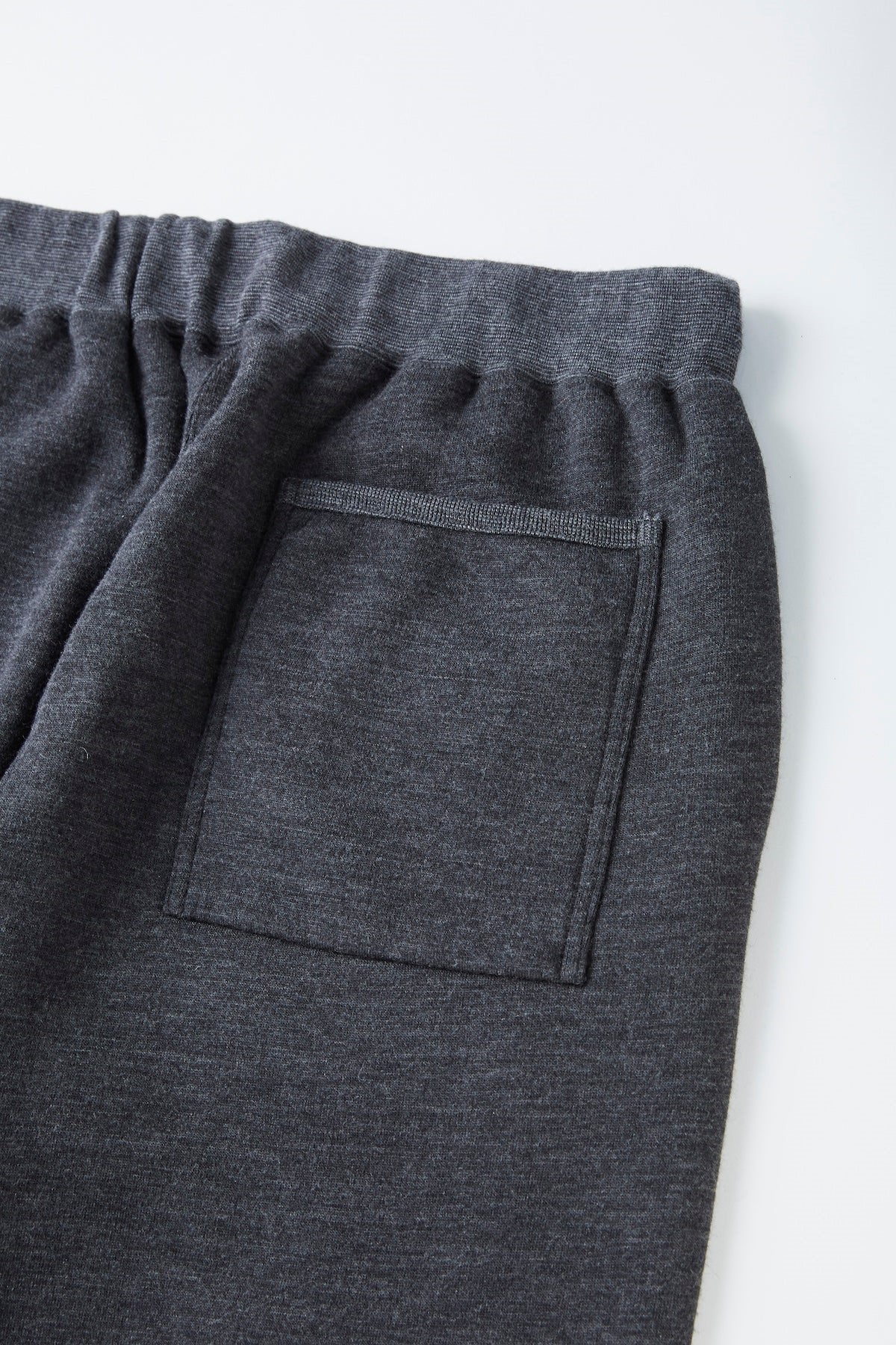 ウエストと裾に配されたドローコードでシルエットをアレンジすることができるスウェットパンツ。古き良きアスレチックウェアのディテールと、昔ながらのユニークなカッティングラインが雰囲気を盛り上げる。ファインウールとコットンをブレンドして編み立てたマテリアルは、上質な質感と心地よい肌触りが特徴的。また経年の佇まいをデザインとしてプリントされる掠れたステンシルも雰囲気を盛り上げる。