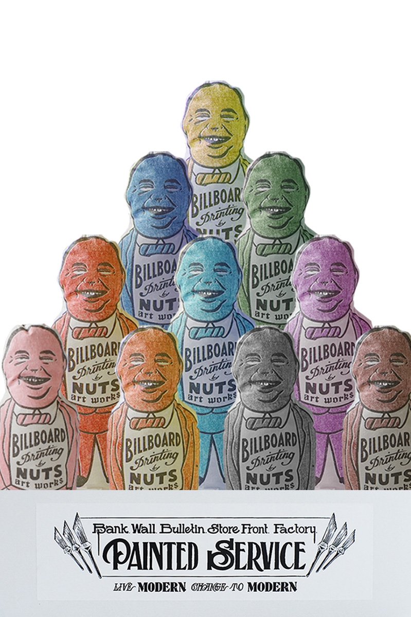 2017SSからスタートする”BILLBORAD"と名付けられた、東京を代表するサインペインターNUTS ART WORKSによる手書きのデザインにフォーカスをあて展開してゆくライン。NUTS ART WORKSのサインボードをグラフィックとして使用する際、Tシャツなどのプリントアイテムは、着用者の意図の有無に関わらず、メッセージを伝えるコミュニケーションツール、メディアとしての役割を持つことから、動く看板=広告としてビルボードと名付けられました。