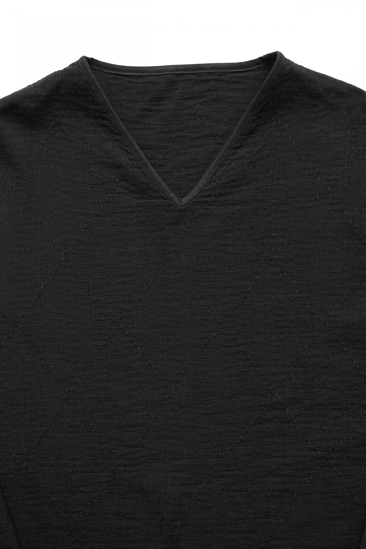 ポータークラシック《刺し子ストレッチVネックロングスリーブシャツ》ブラック