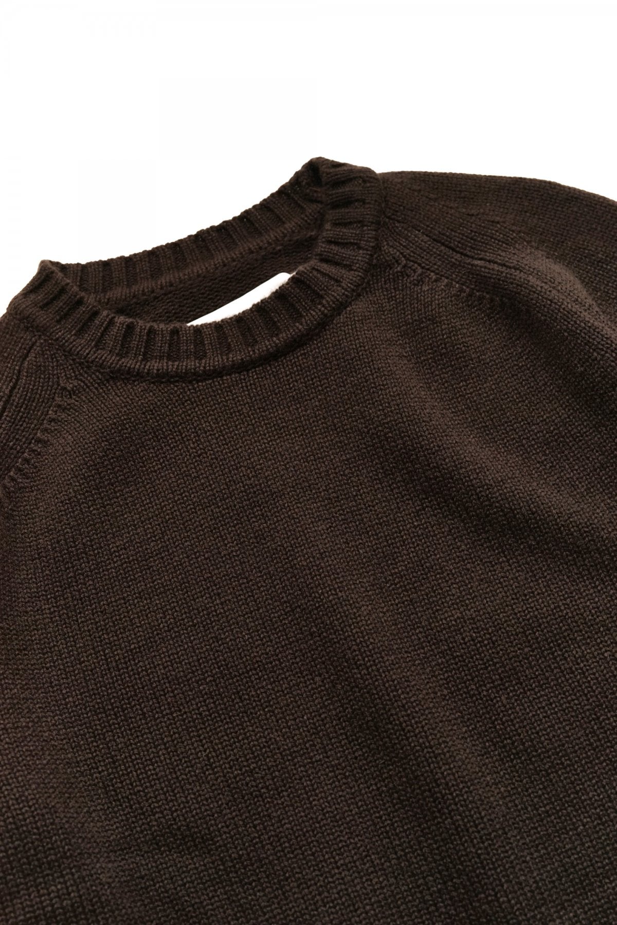 シンプルなラグランスタイルのクルーネックニット。 100% Cashmereの柔らかな着心地、3ゲージのチャンキーなリブ、ネックラインが目を引きます。