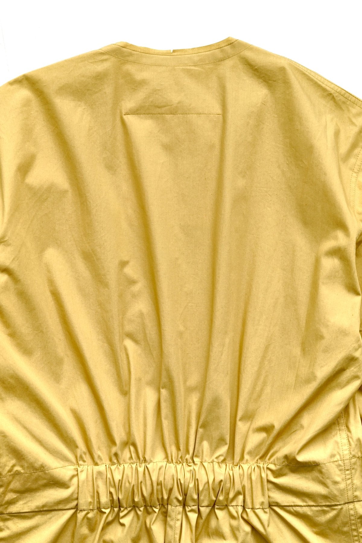 新型となるTHE GARDENER OVERALL。 前立てボタン、カラーレス、フロントパチポケットデザイン。 ウエストのフィッティングを高めるためバックギャザリング仕様となっております。 また裾はボタンとタブで調節可能ですのでテーパードレッグスタイルでも着用可能。 滑らかでパリっとしたハリ感のあるイタリアンコットン生地を用いております。