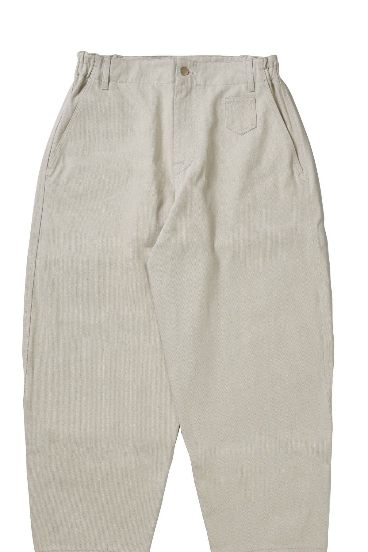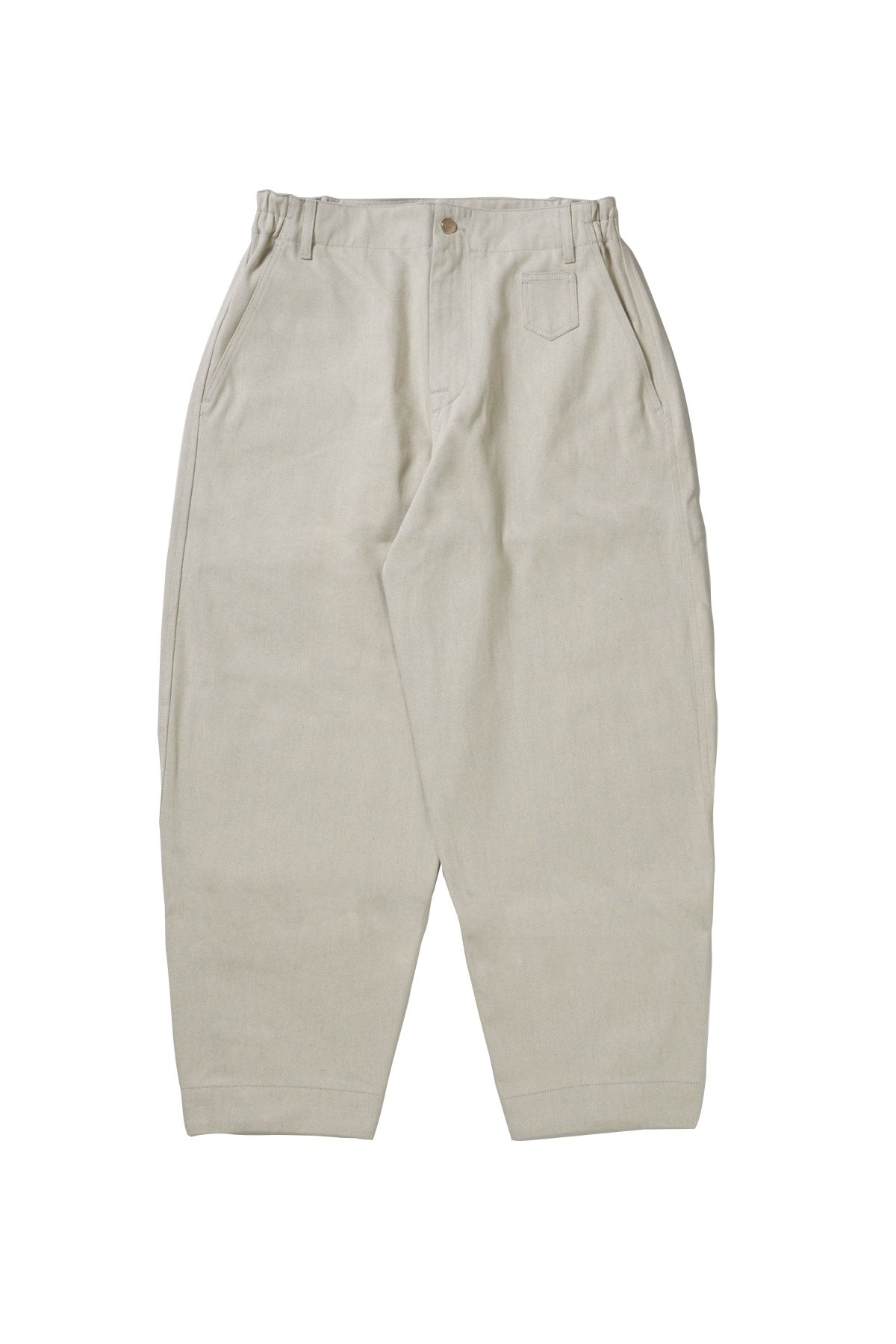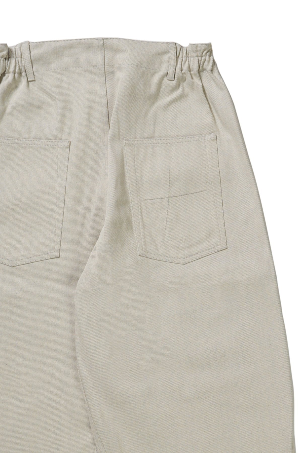 淡いチョークブルーの色合いの 13 1/2 オンス デニムで作られています。表面の織りにはオーガニックコットン、裏面にはリサイクルコットン インディゴ糸を使用しており、環境に配慮したデニムとなっています。