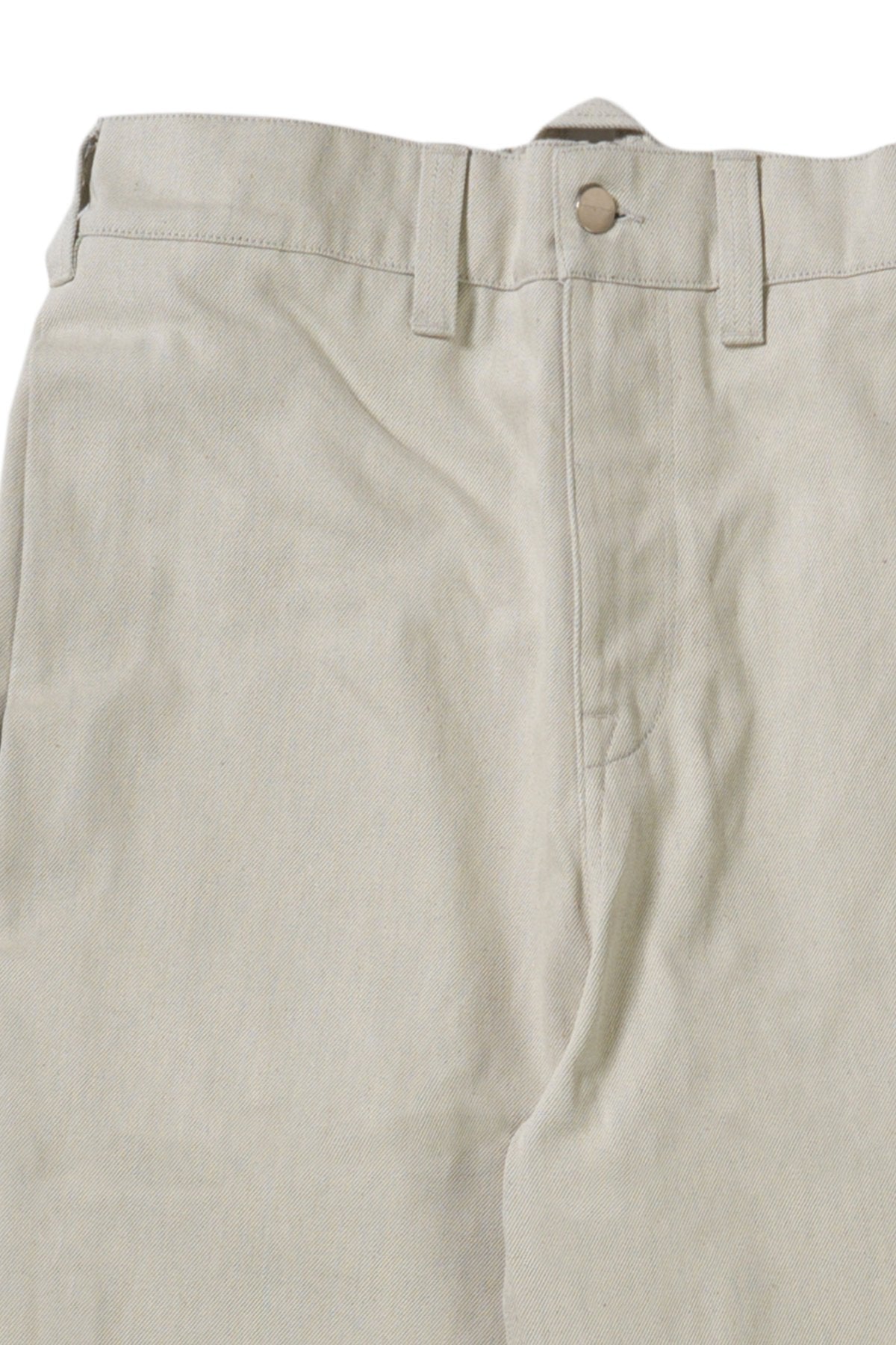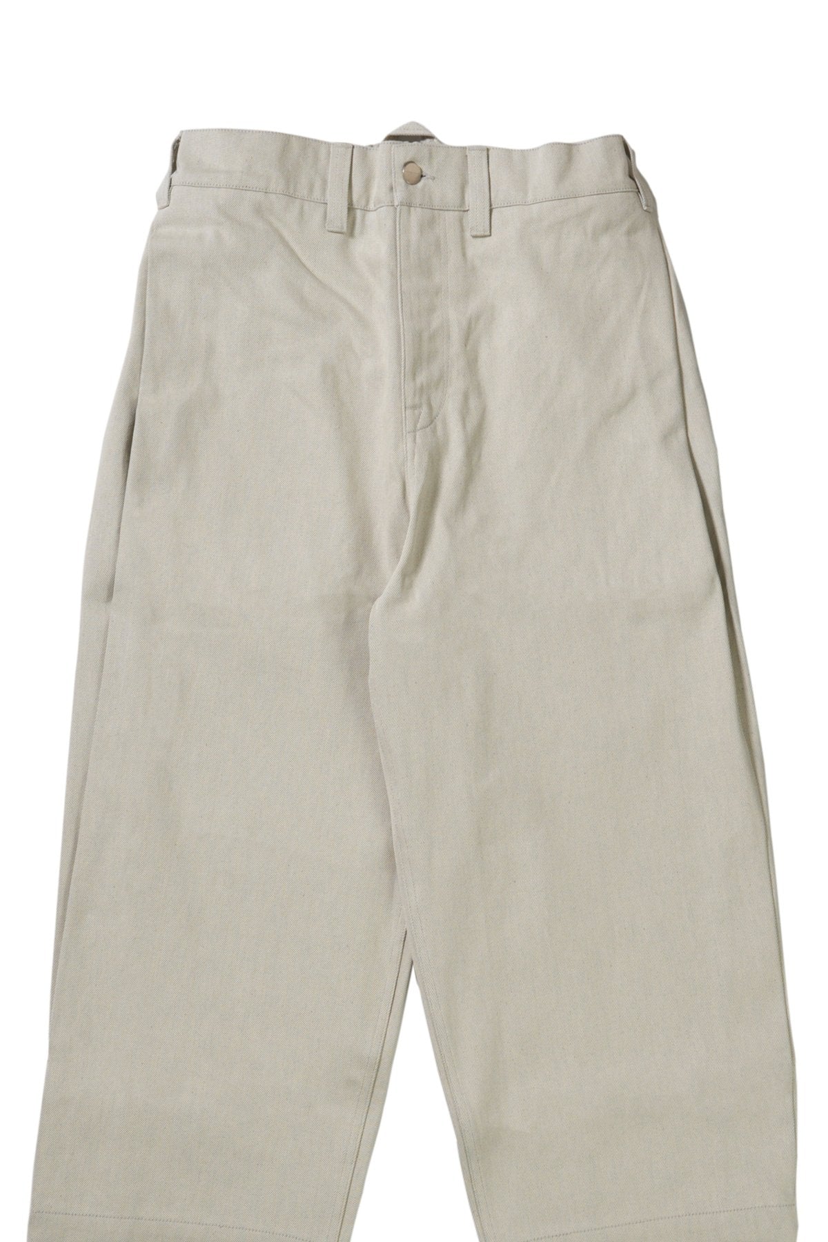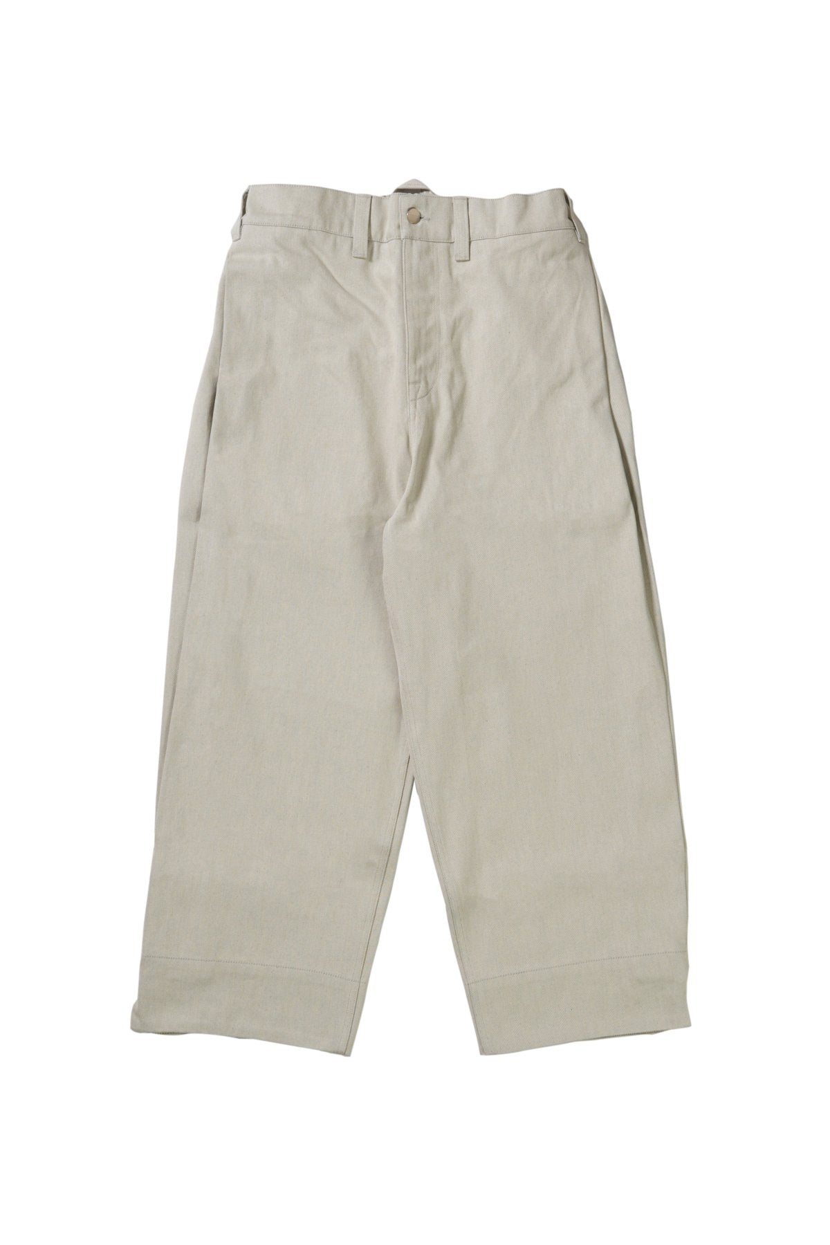 新作の Baker Jean は、フロントがフラットでバックが伸縮性のあるクロップド ワイド レッグ スタイルです。サイドポケットを隠すプリーツが側面にあることで、裾に段差のあるディテールが作られており、ボタンを留めるとよりテーパードしたシルエットになります。