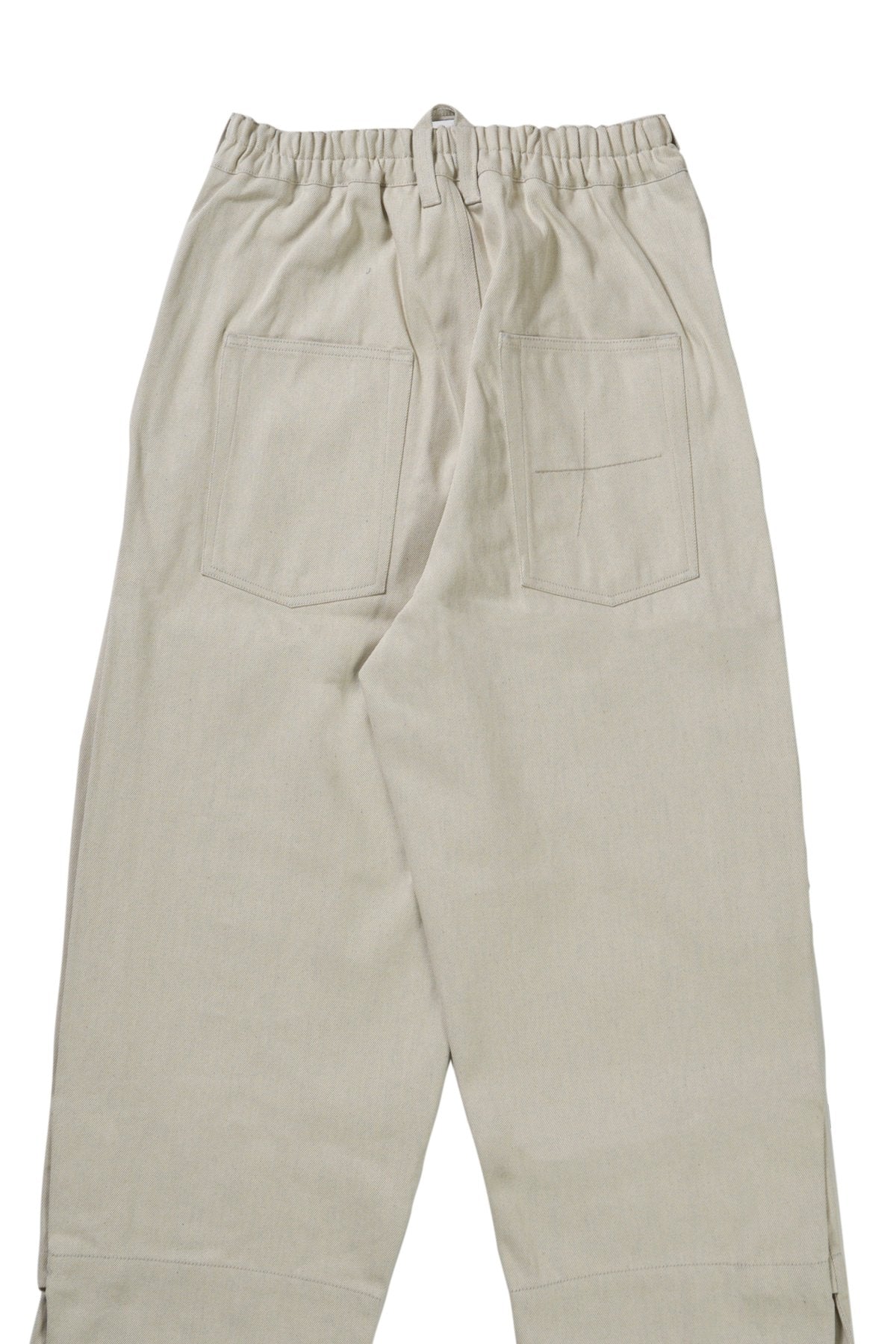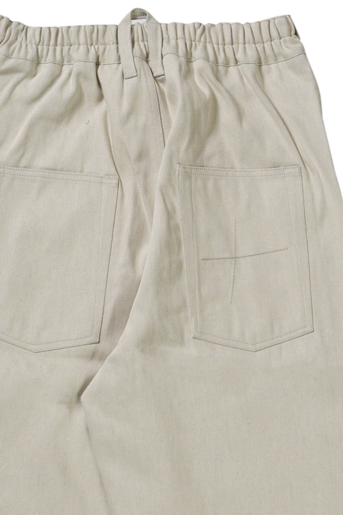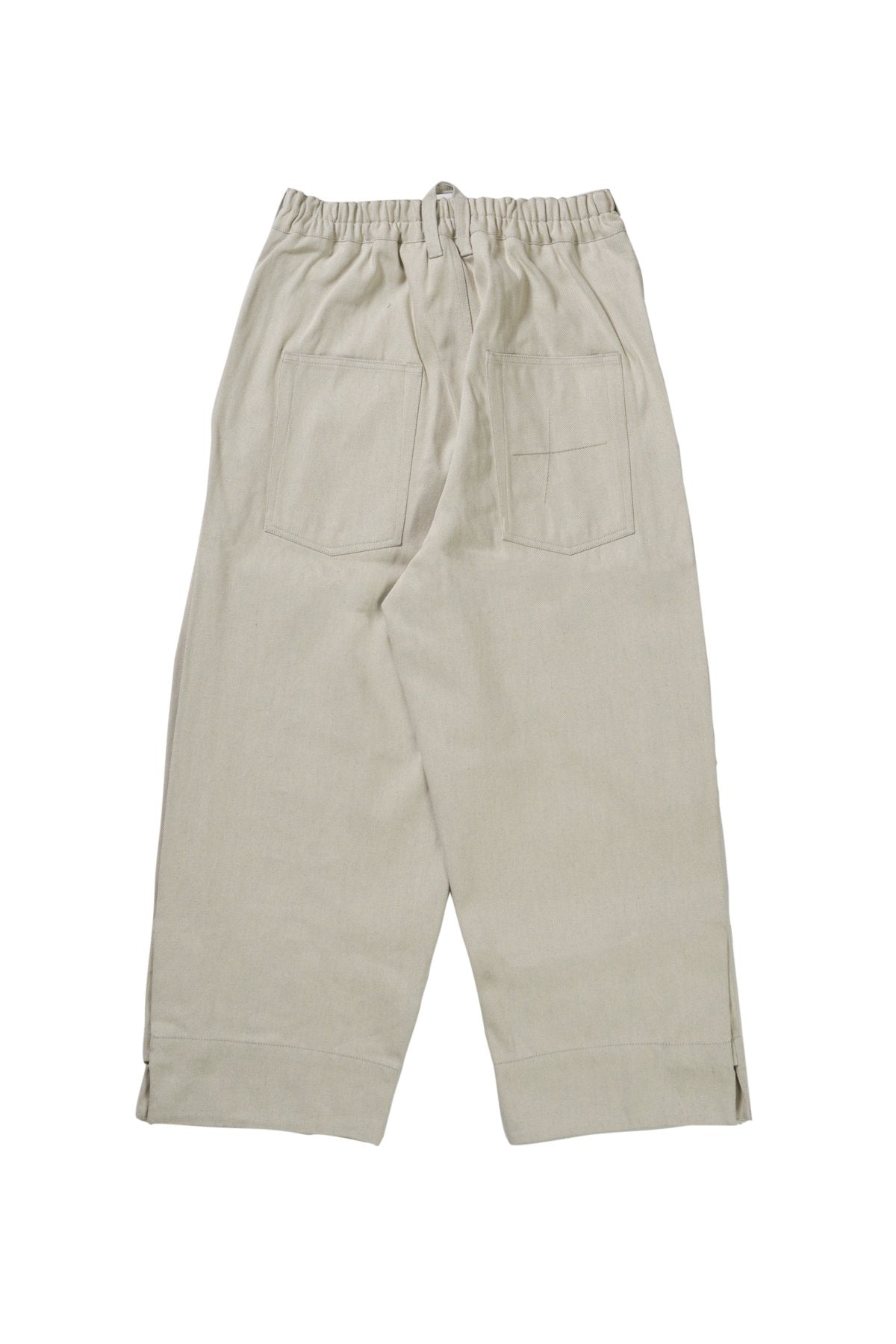新作の Baker Jean は、フロントがフラットでバックが伸縮性のあるクロップド ワイド レッグ スタイルです。サイドポケットを隠すプリーツが側面にあることで、裾に段差のあるディテールが作られており、ボタンを留めるとよりテーパードしたシルエットになります。