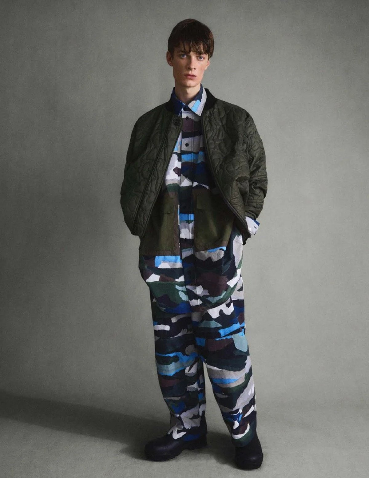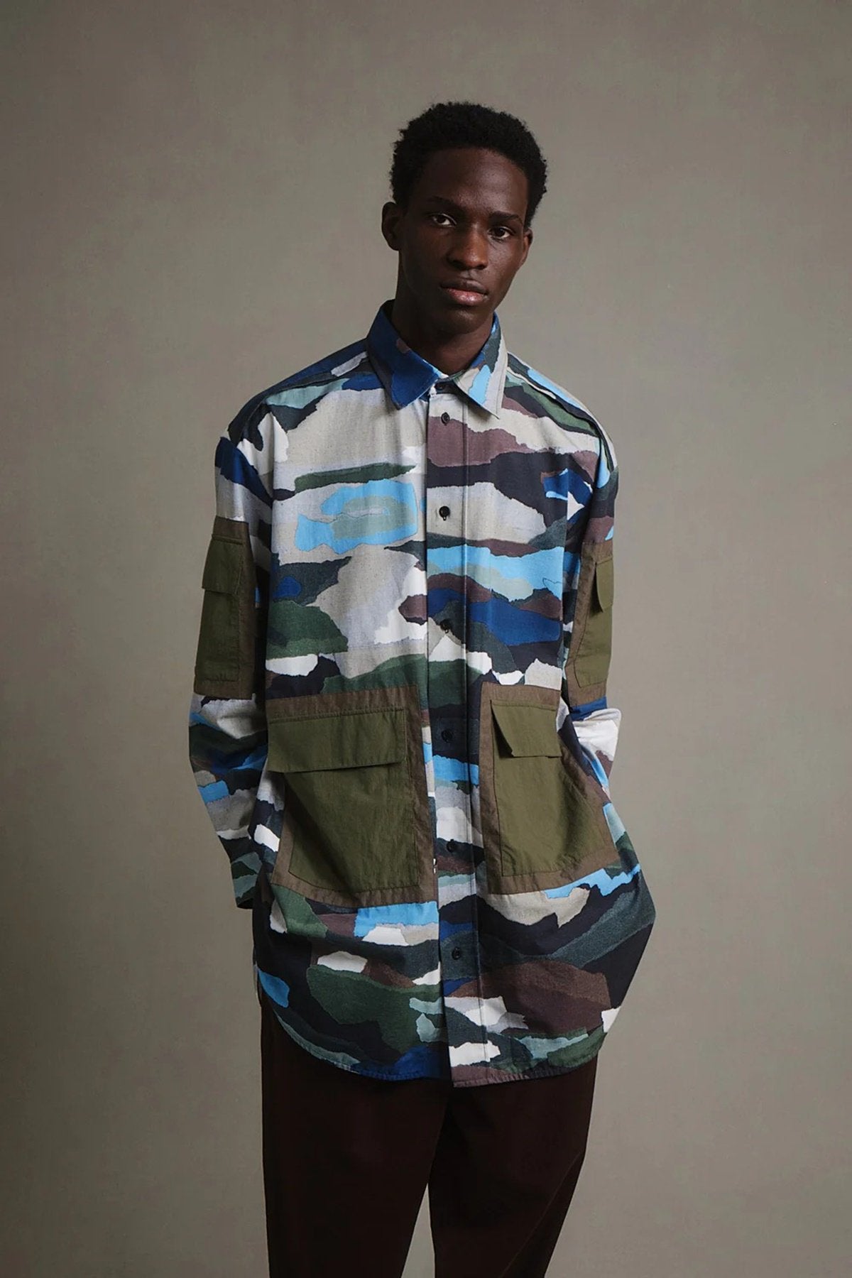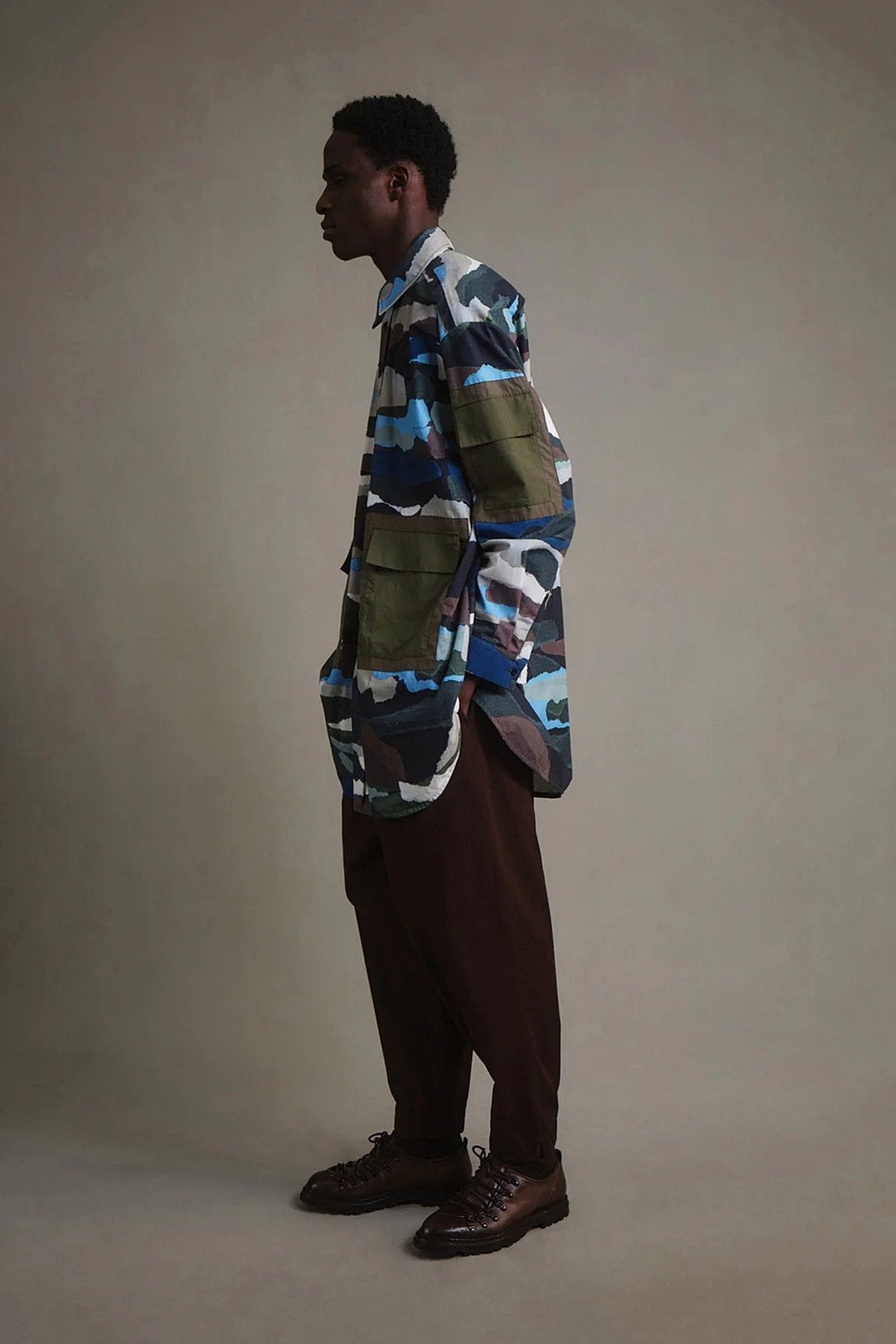 このデザインは、Toogood 独自の迷彩を作成するために、手でちぎった色紙をコラージュして作成されました。