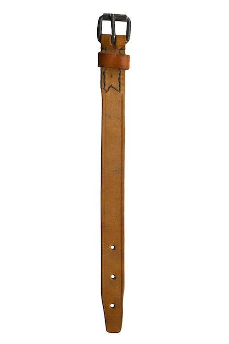 1950年代のフレンチアーミーのデッドストックレザーブレス。当時ブランケット等を巻くのに使用されていた物ですがカスタムを施しレザーブレスに仕上げました。ナチュラルカラーの肉厚なレザーは使い込むうちに