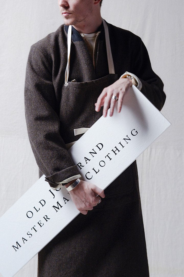 サックジャケットと同様に、オリジナルで制作した独特なマテリアルが特徴的なOLD JOEの定番プロダクト。フォーマルに着る事もできるし、ワークウェアとしても着る事が出来るニュートラルなイメージ。同じマテリアルでジャケット、トラウザー、エプロン、キャップを展開しているので、様々なコーディネートを楽しむ事が出来る。 グレー色のランダムへリンボーンは、経糸にオーストラリア産の10番単糸のケンピ糸を、 緯糸に7番単糸の英国羊毛の粗挽き糸を用いて制作しています。 固くなりすぎないように打ち込みを調整しているのも特徴。