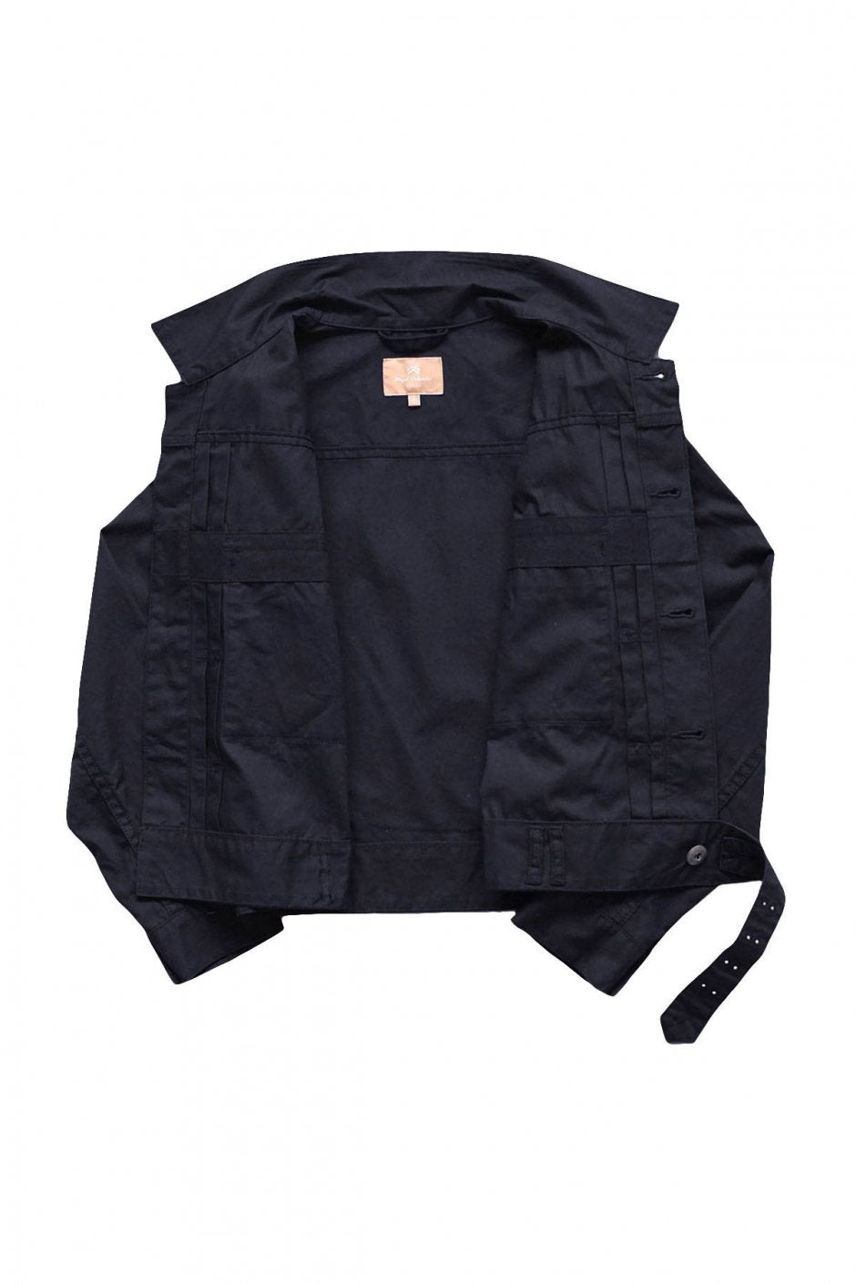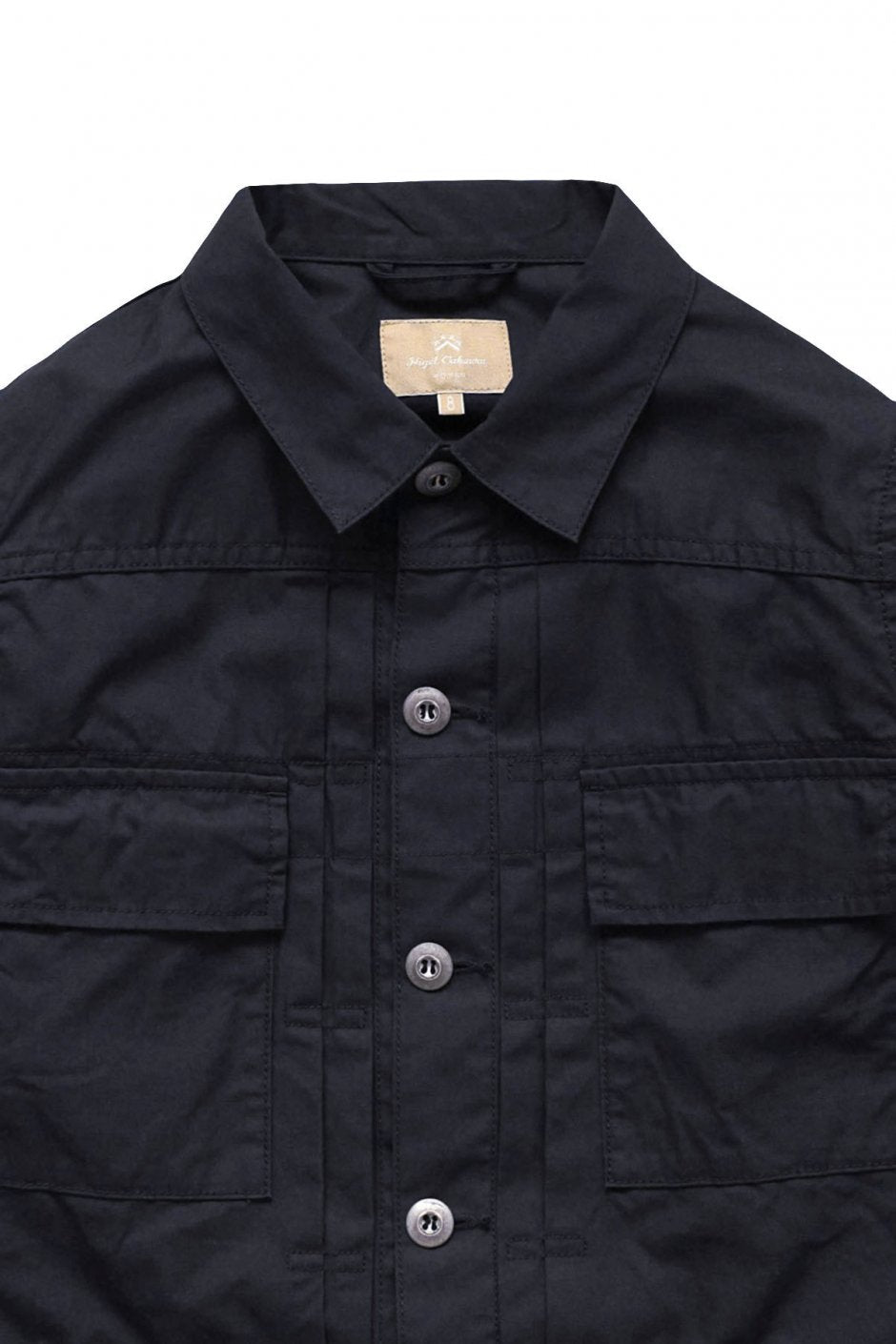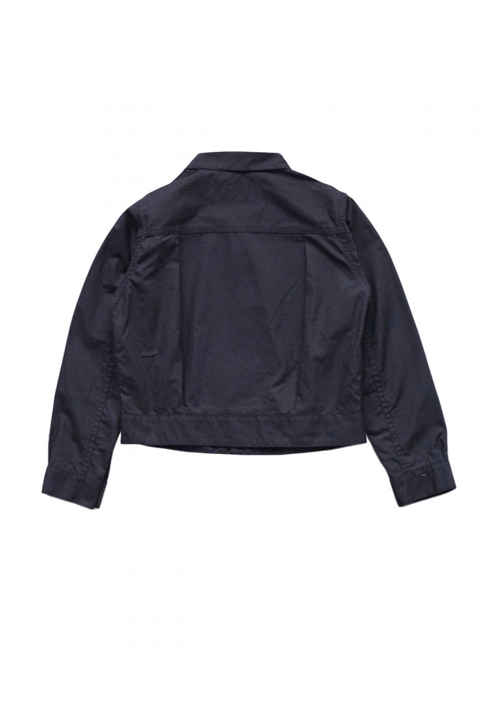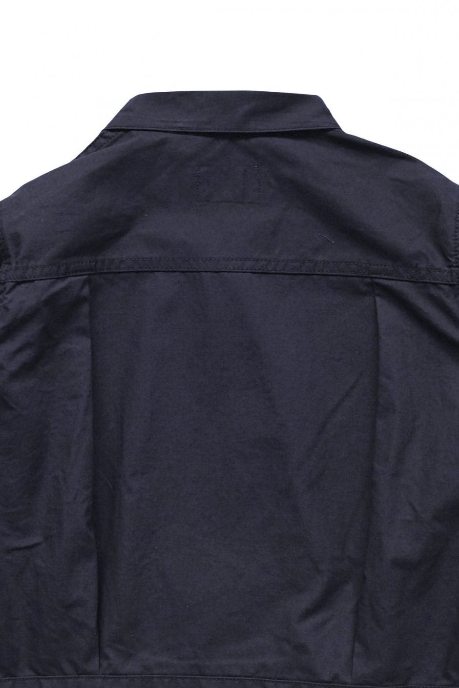 英国軍が着用していたバトルドレスジャケットをベースに1950 年代のデニムジャケットのディテールをドッキングさせたデザインを張りと光沢のあるドライな質感のコットンポプリンファブリックに載せました。