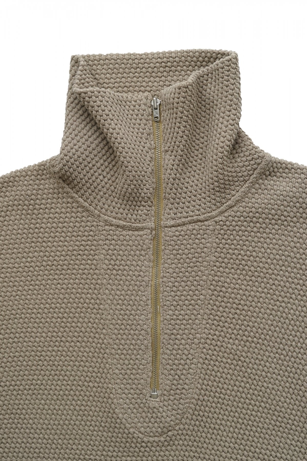1900年代初頭のフランスのアンダーウェアの編み地がモチーフ。 まだサーマルがなかった時代のサーマルの様なカテゴリーのワッフルパターンはとても珍しくあまり目にする事はないでしょう。 またリブにレイアウトされた、グラデーション織ボーダーもとても細やかで、古き良きプロダクトへの思いを感じさせる。