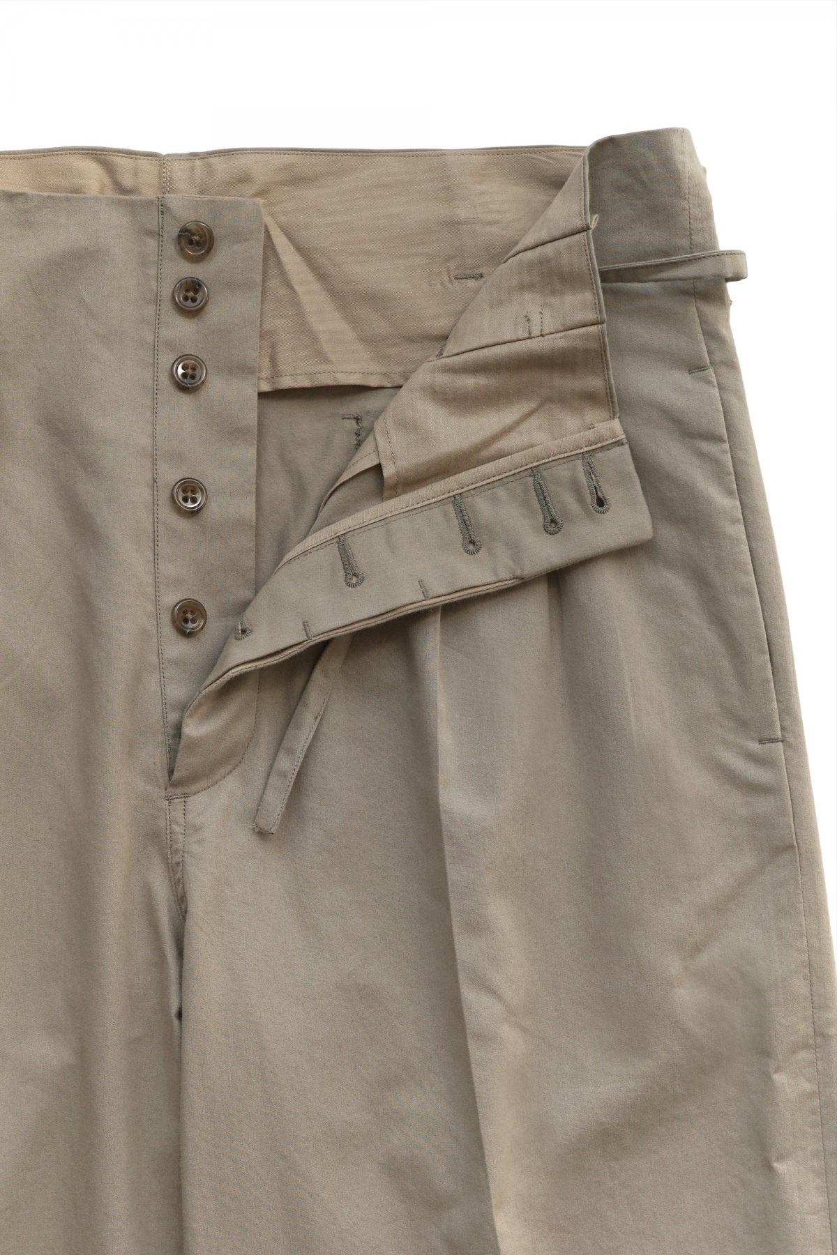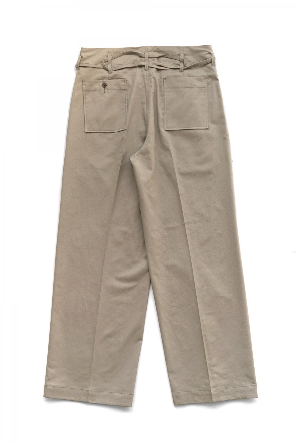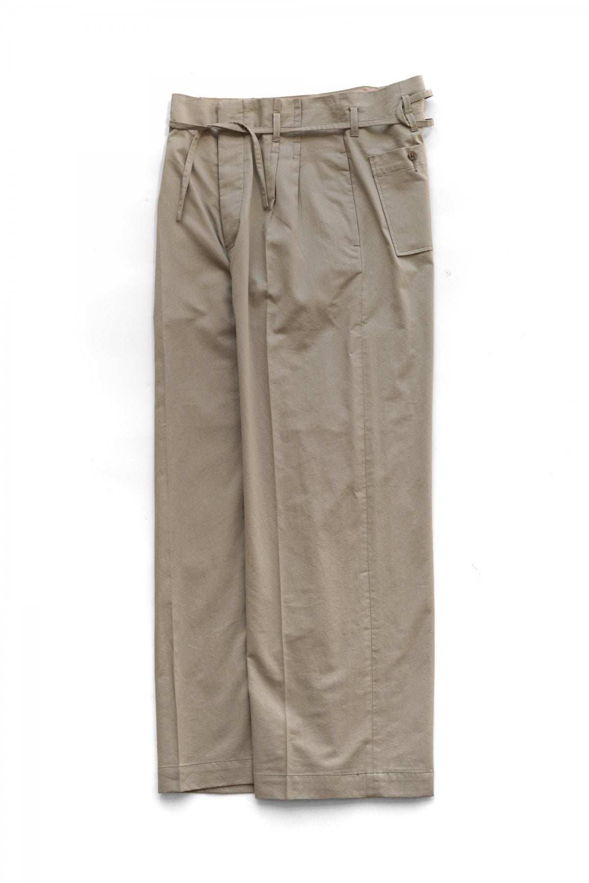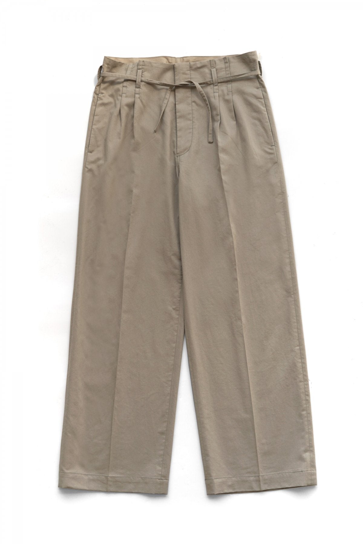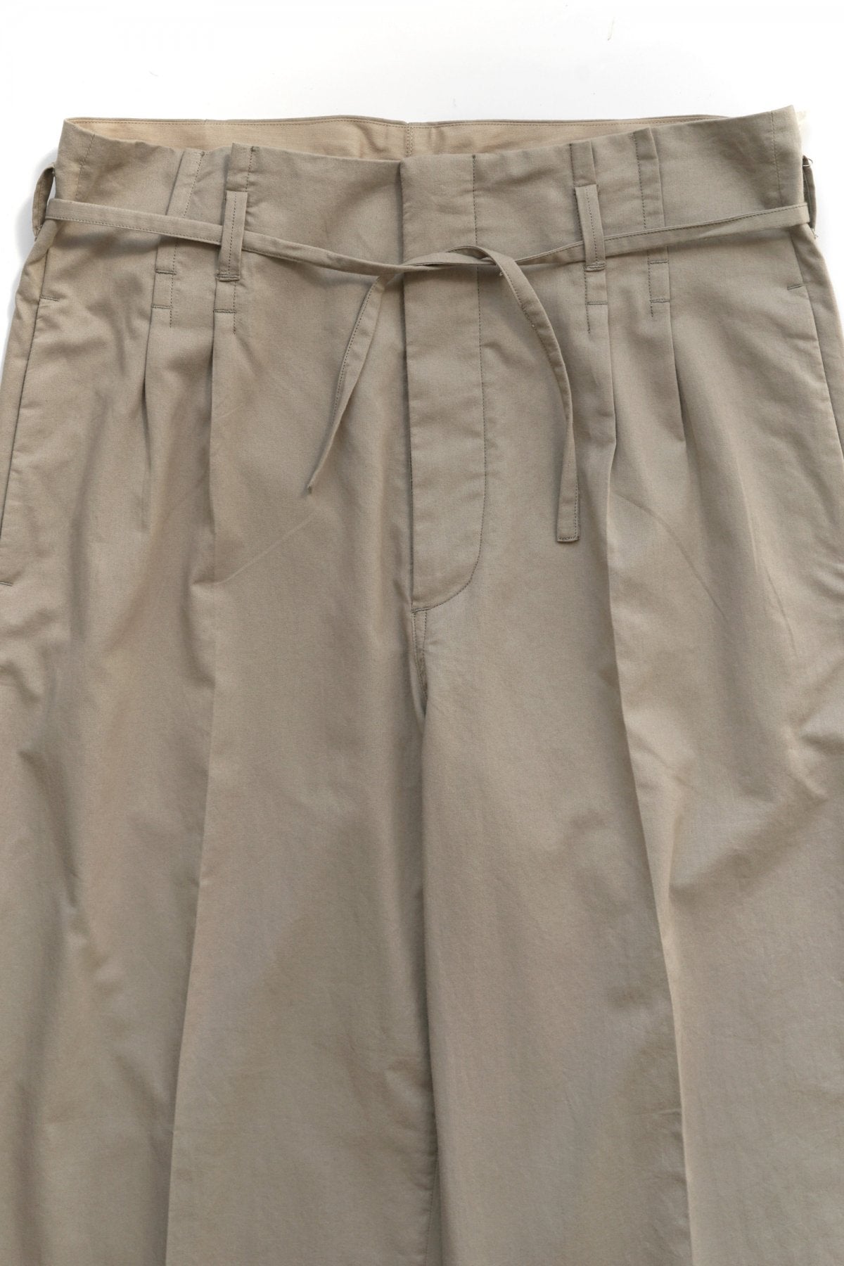 ウエストで縛るディテールが特徴的なワイドトラウザー。