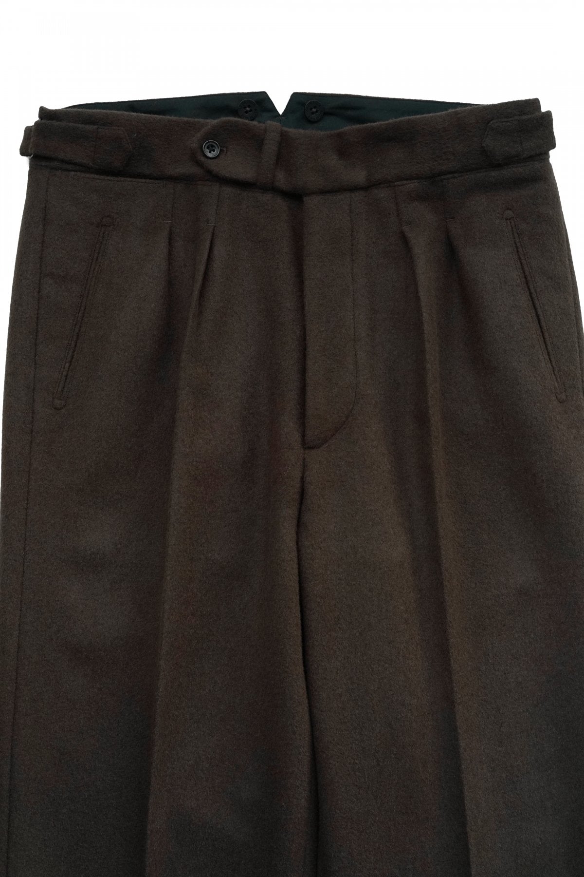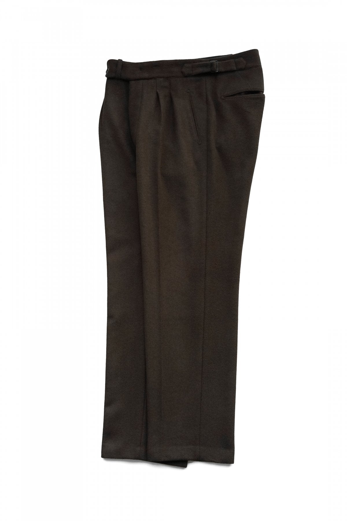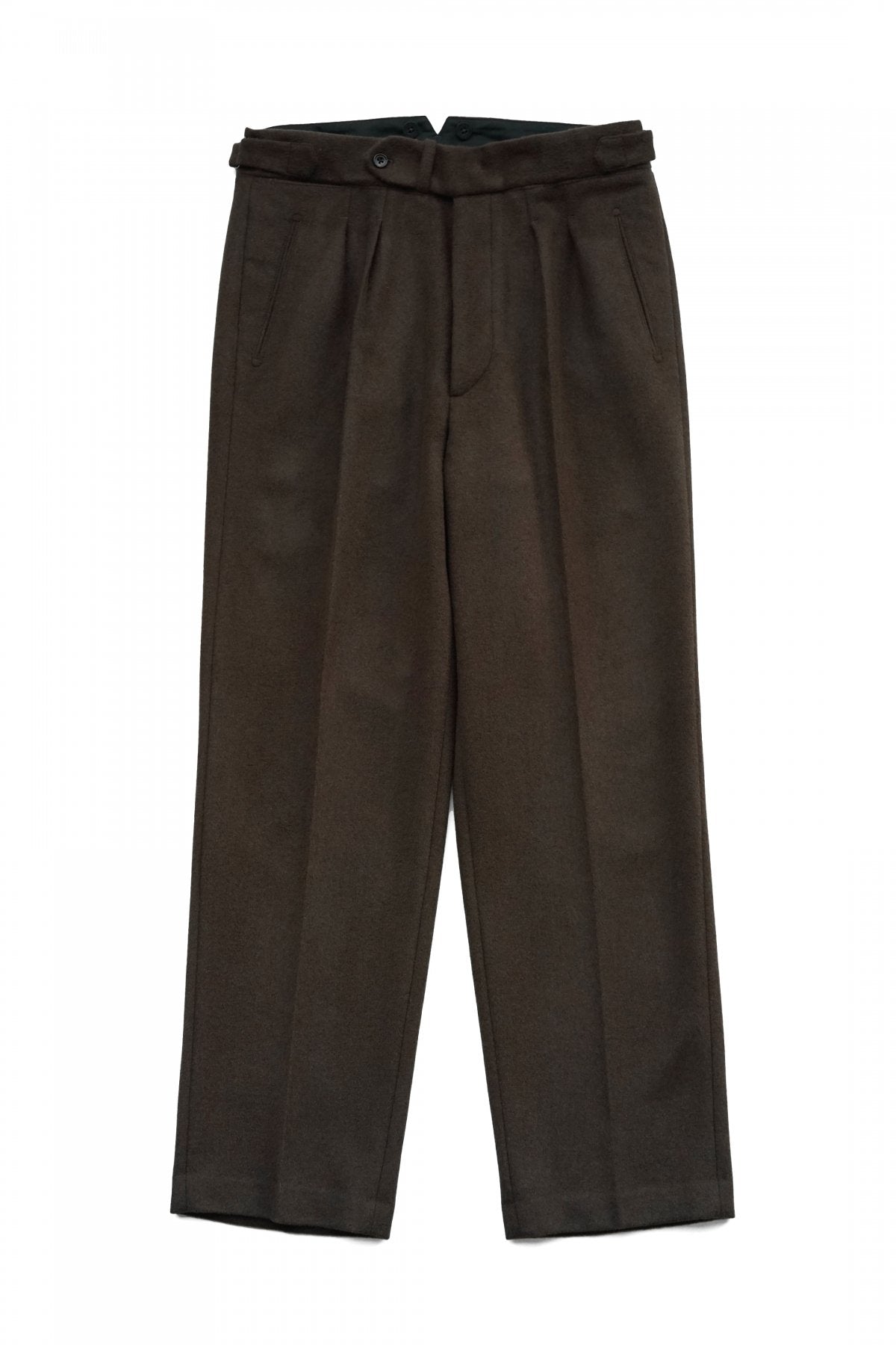 シルエットは(ダブルテーラーのトラウザー)のウエスト、ヒップ周りをベースに、裾巾を少し狭く設定したテーパードライン。