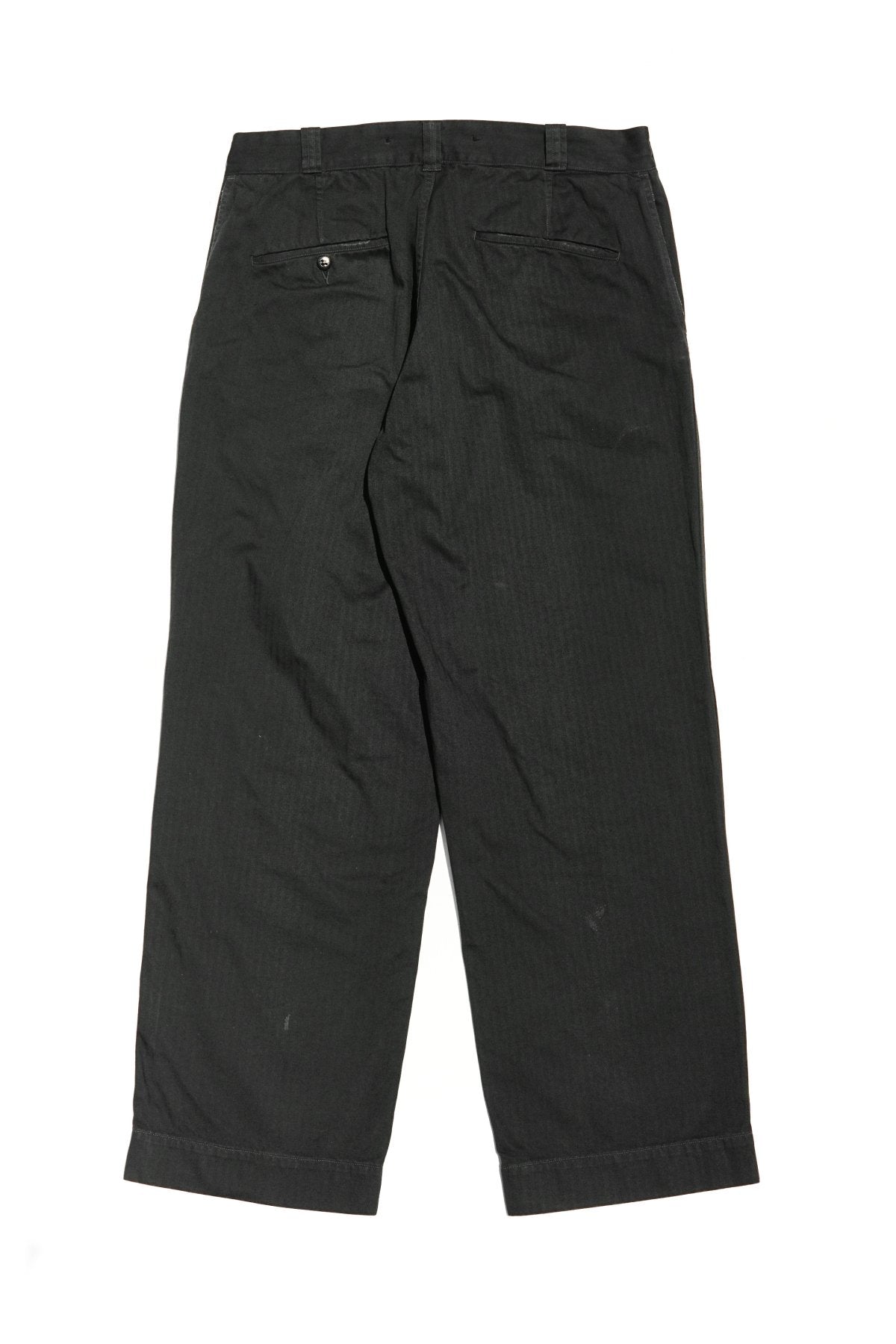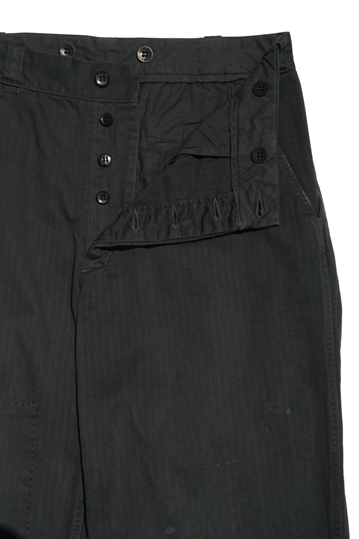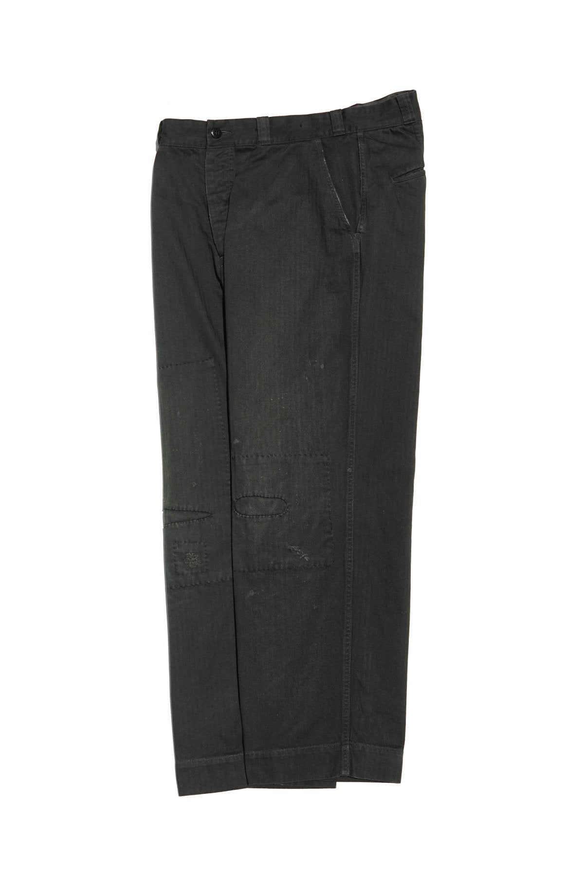 秋冬からの継続となるスプリットポケットトラウザーをベースに、スカーフェイス加工を施したヘリンボーンツイルトラウザー。経年変化が作り出す布の破れや傷、修復跡(=スカーフェイス)などを、私たちは美しいものとして捉えています。愛情や情熱を込めて、修復しながら長持ちさせるといった価値観に最大に敬意を払ったデザインとなります。そのアイテム自体が持つ背景や歴史を、色々と考える事のできるディテールを、デザインとして提案します。
